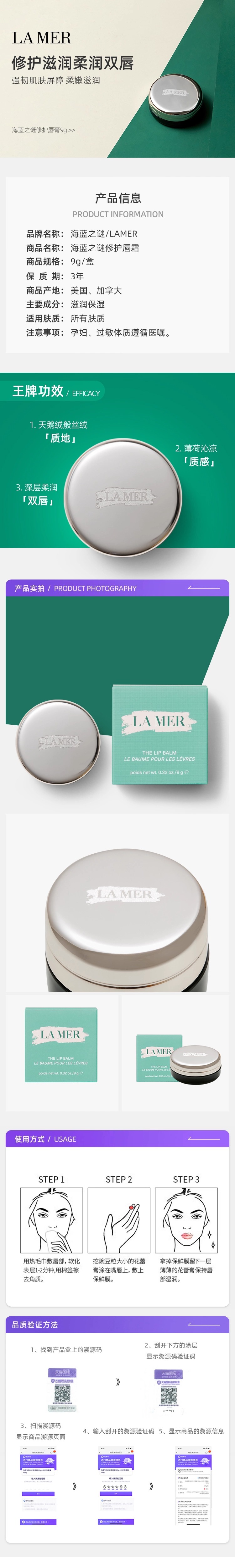 LA MER/海蓝之谜修护唇霜 保湿滋润修护淡化唇纹唇膏9g(注:美妆为特殊商品,下单后不支持退货)