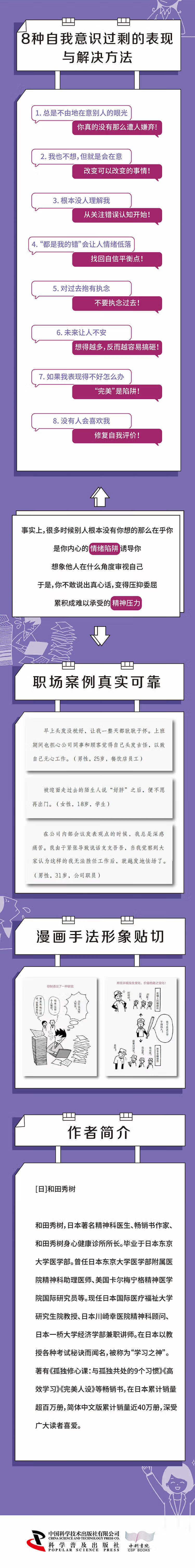本书是日本心理学大师、畅销书作家和田秀树撰写的关于自我意识过剩以及如何摆脱自我意识过剩的心理学通俗普及读本。过于在意他人对自己的看法,容易被他人的评价束缚,这种心理被称为“自我意识过剩”。我们为什么总是陷入自我意识过剩?我们又应如何摆脱自我意识过剩?只有深入思考这些问题才能活得更加从容,心情变得更加愉悦,思维方式变得更加灵活。本书围绕8种自我意识过剩的表现,从专业的心理学角度深入剖析人们的心理,阐释自我意识过剩的概念,告诉读者如何摆脱自我意识过剩,如何从容、快乐地活着。