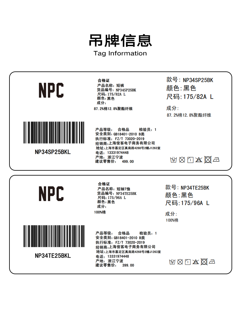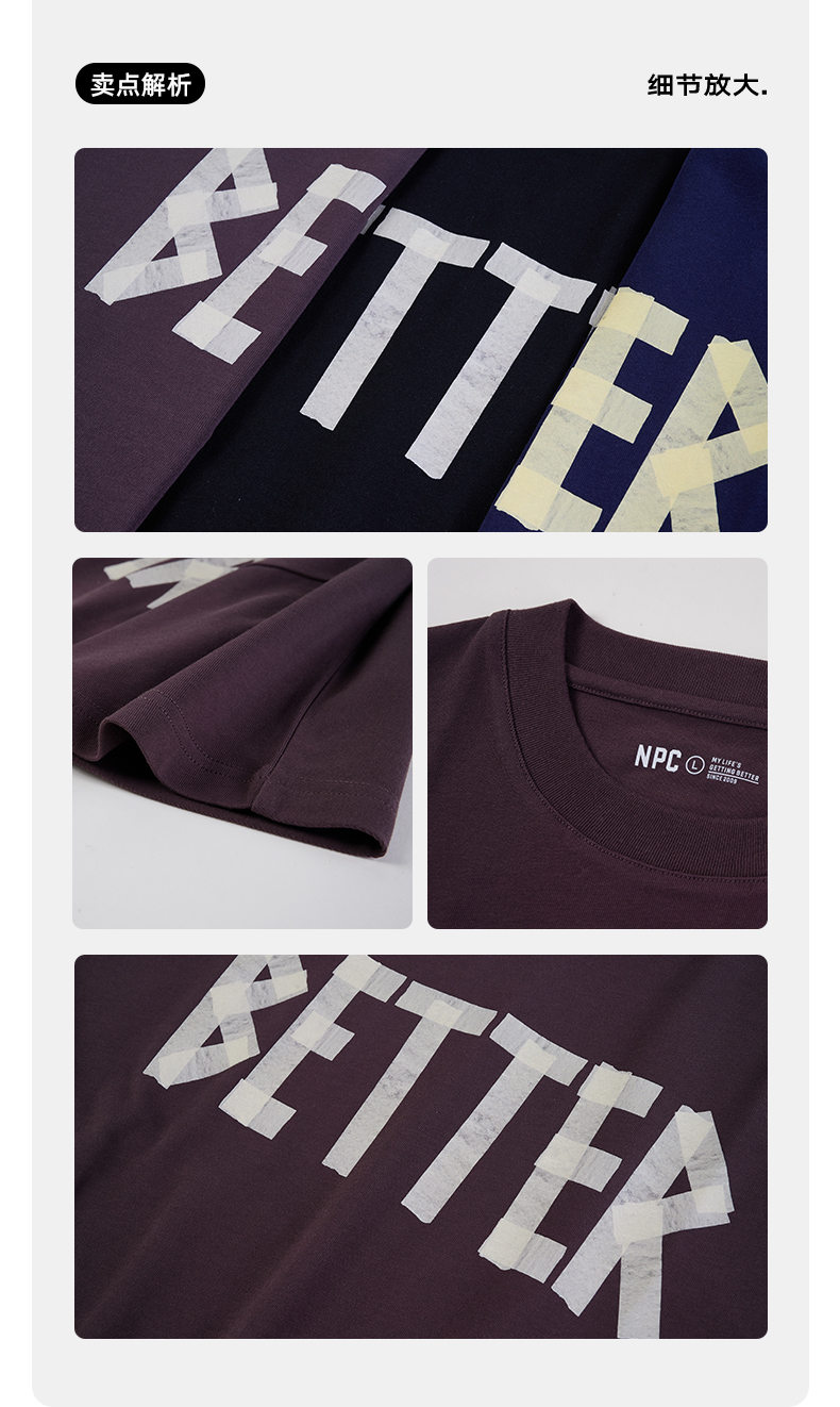 NPC潮牌胸前小织带100%棉短袖T恤男简约舒适字母印花NP55TE71