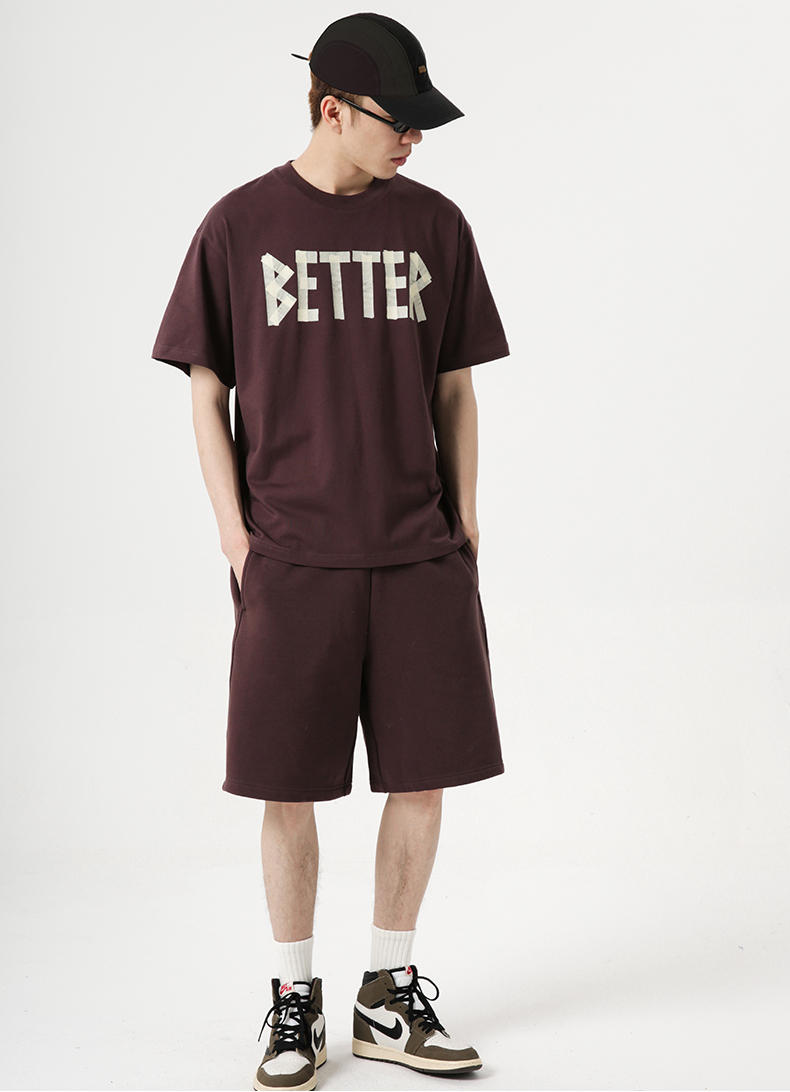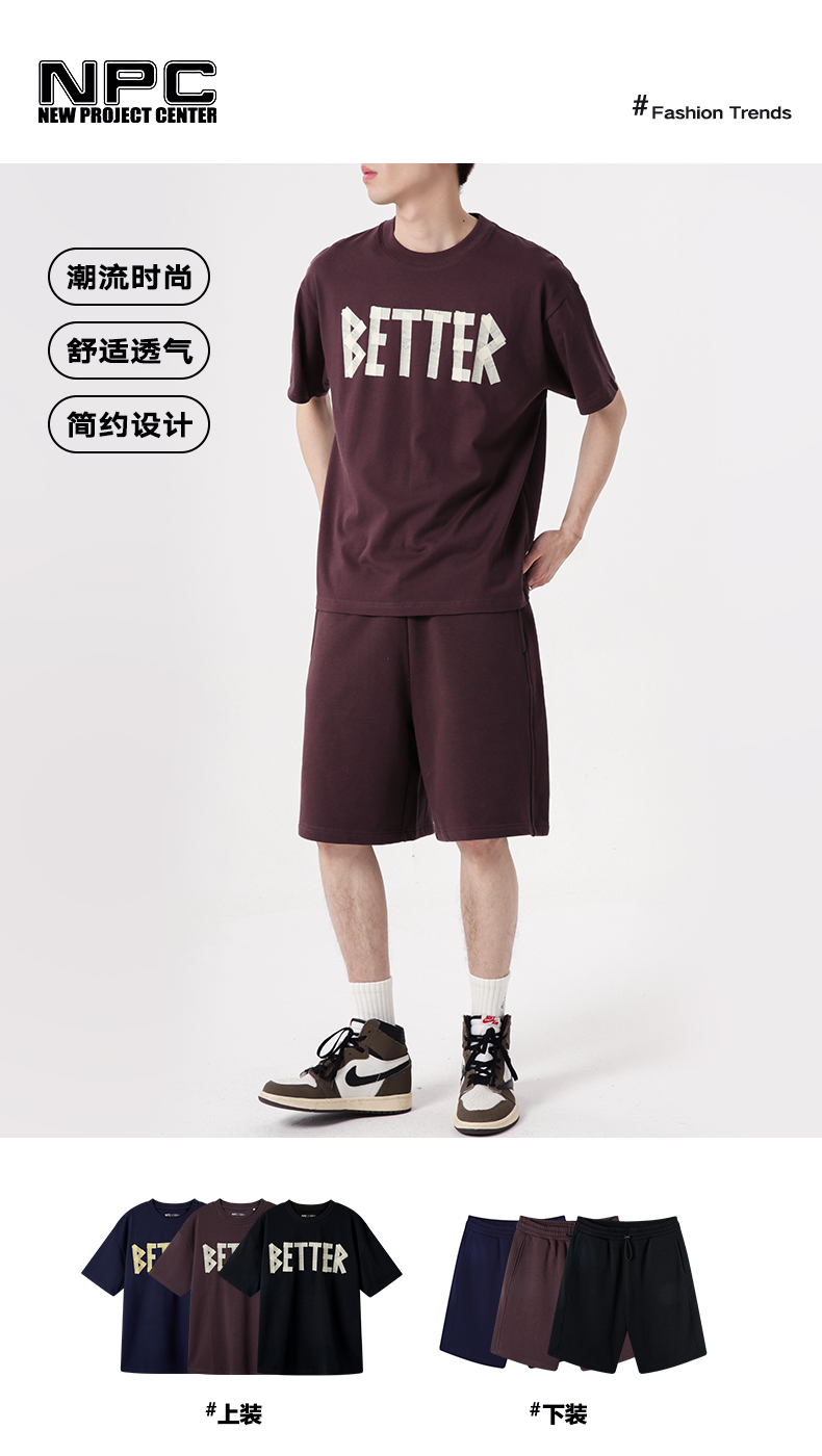 NPC潮牌仿胶布印花纯棉宽松卫裤男潮流短裤宽松舒适NP34SP25