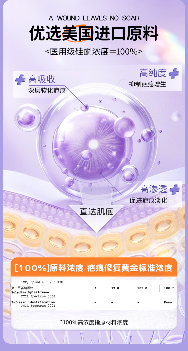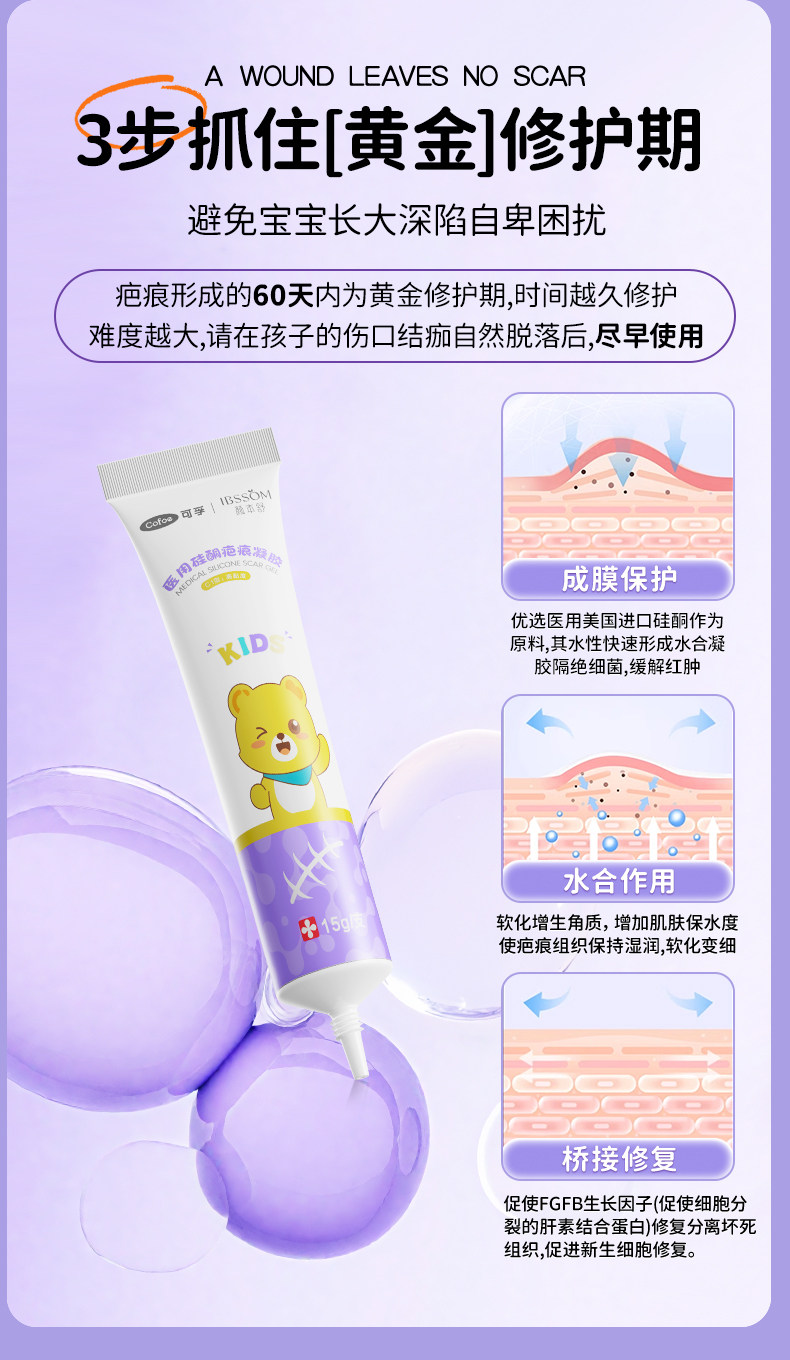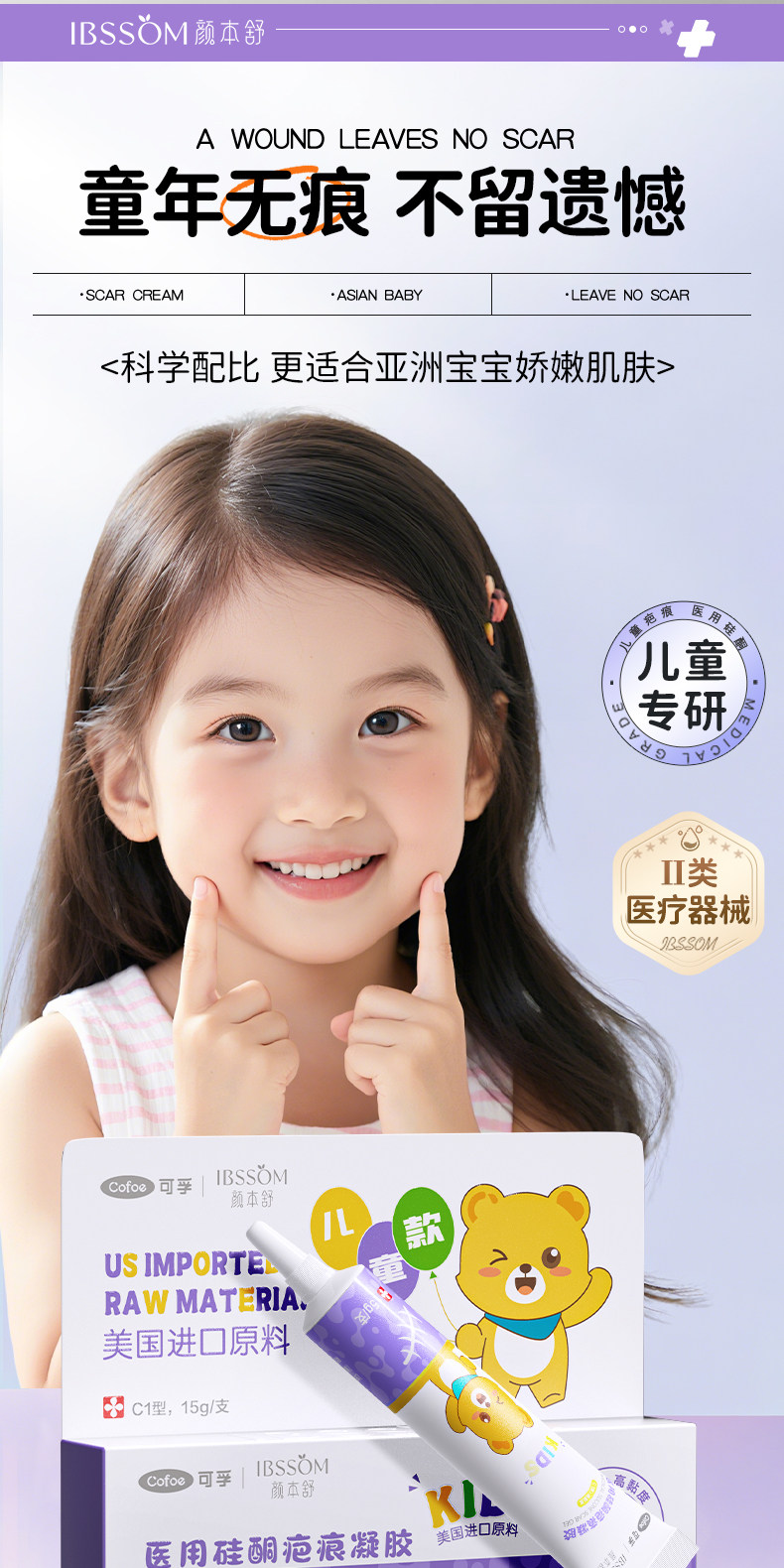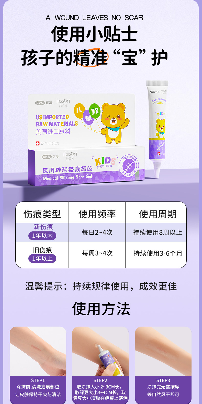 可孚医用祛疤膏硅酮凝胶儿童专用小孩脸部增生疤痕修复去疤除疤膏