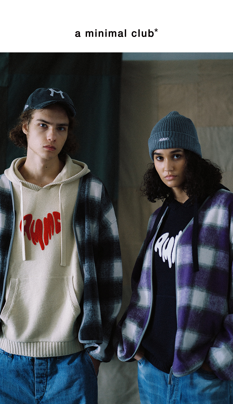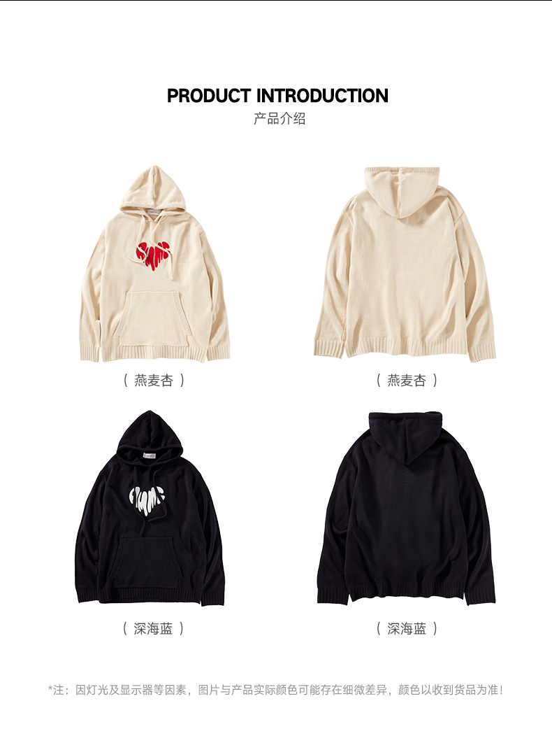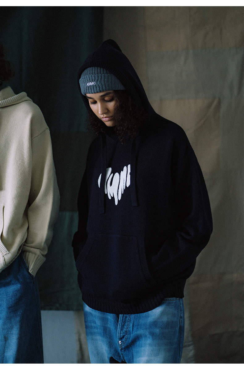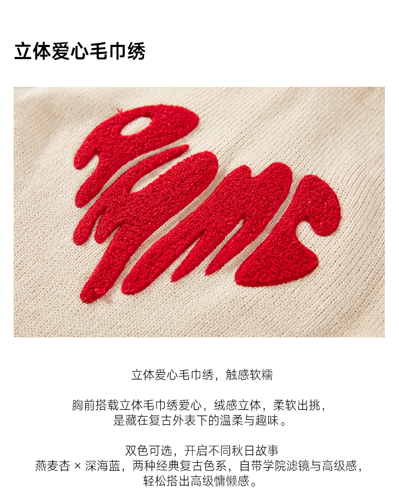 a minimal club撞色毛巾绣爱心连帽针织毛衣美式校园休闲AM59SW13