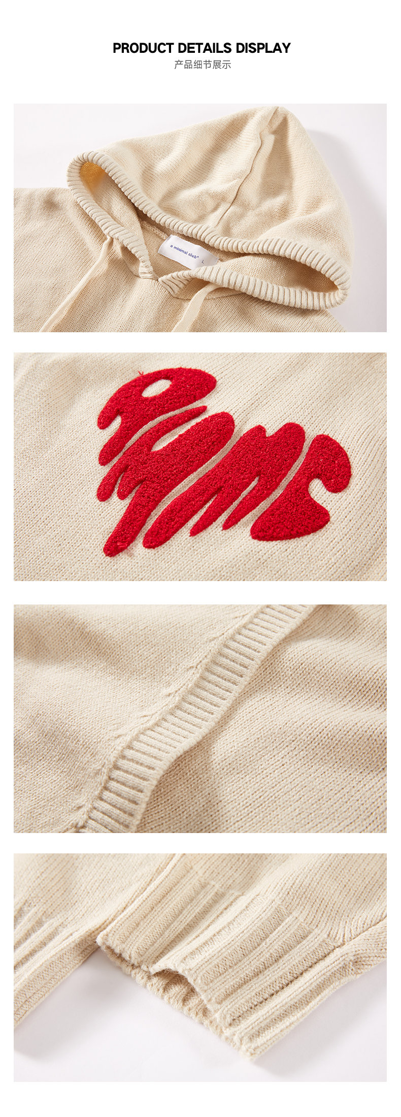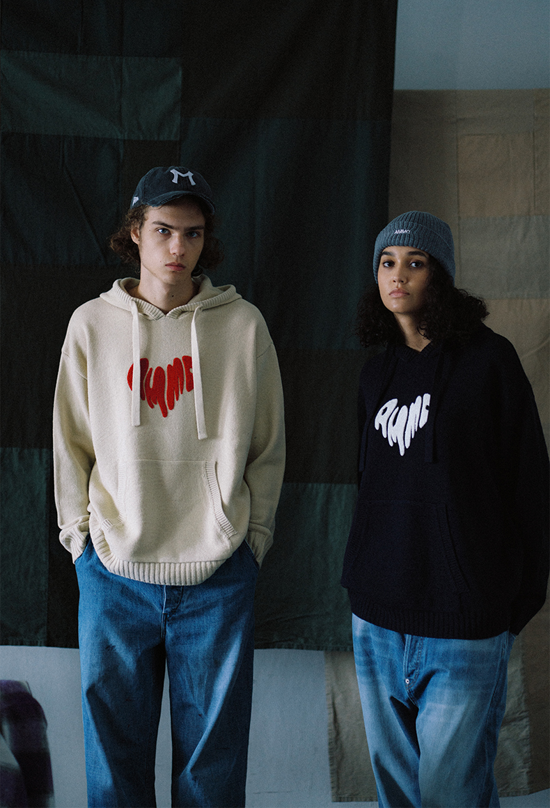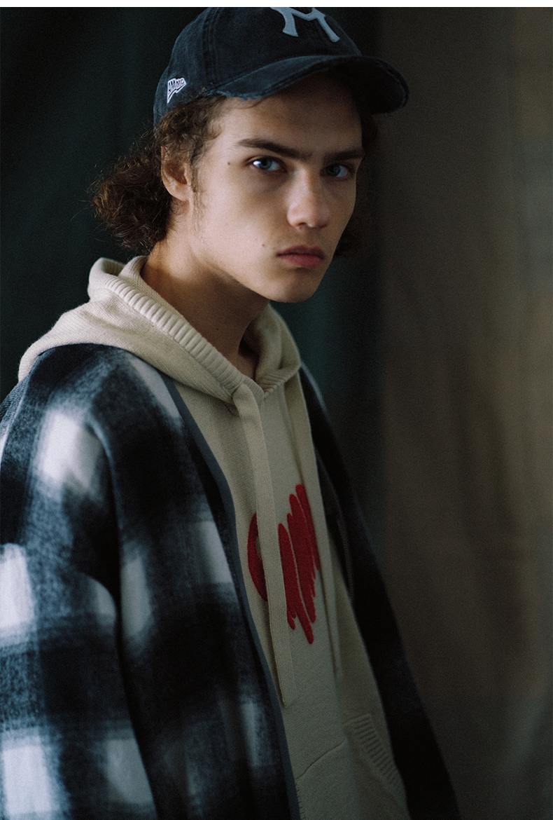a minimal club撞色毛巾绣爱心连帽针织毛衣美式校园休闲AM59SW13