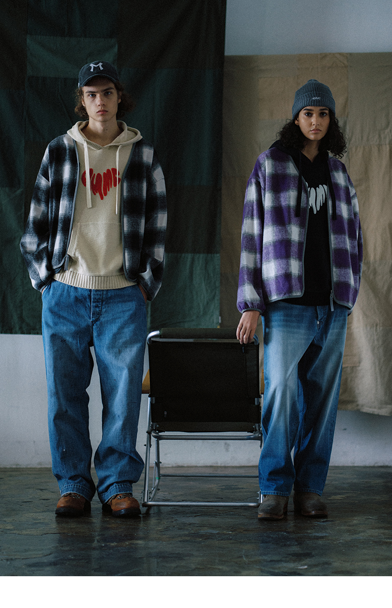 NPC潮牌宽松底特律版型格纹内衬翻领牛仔外套男潮流NP41DC55