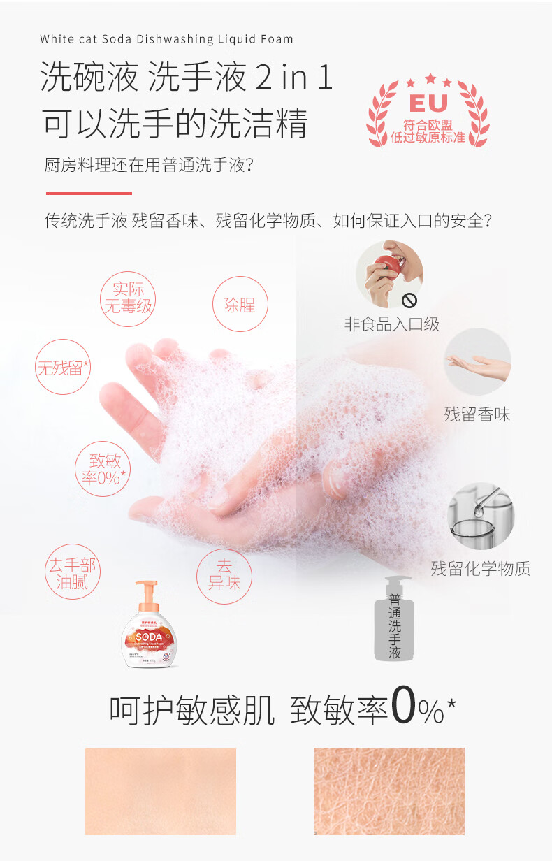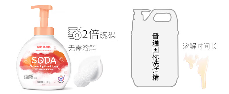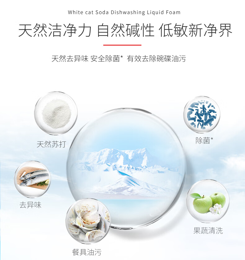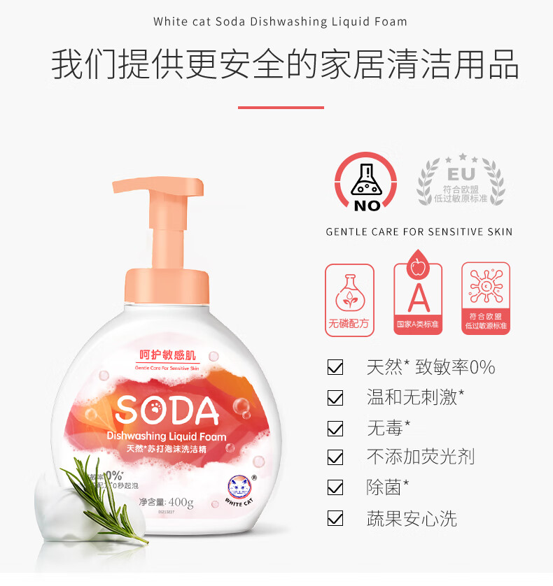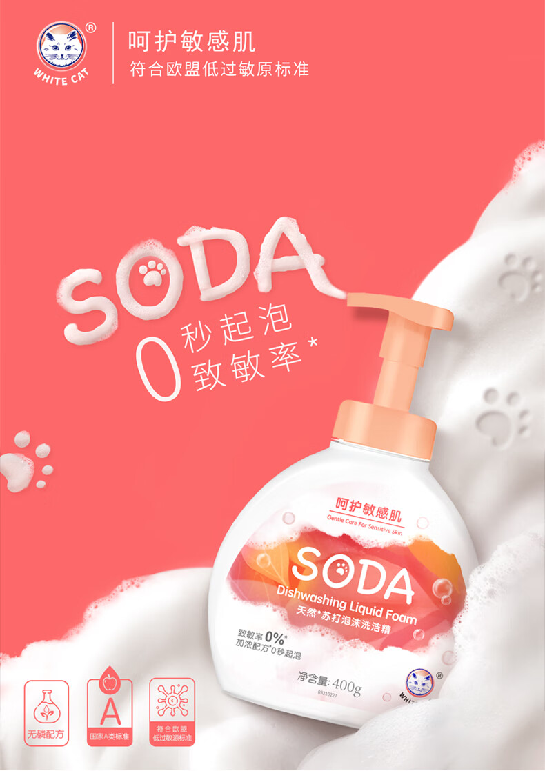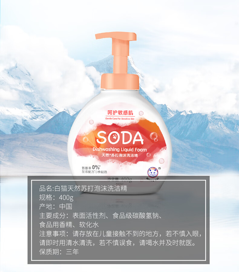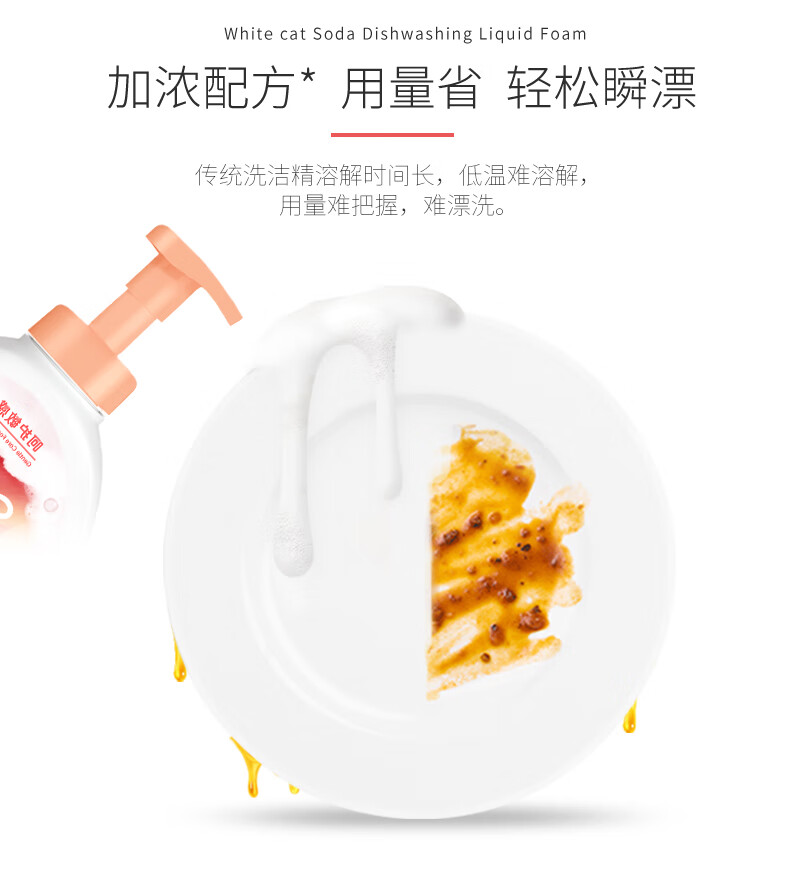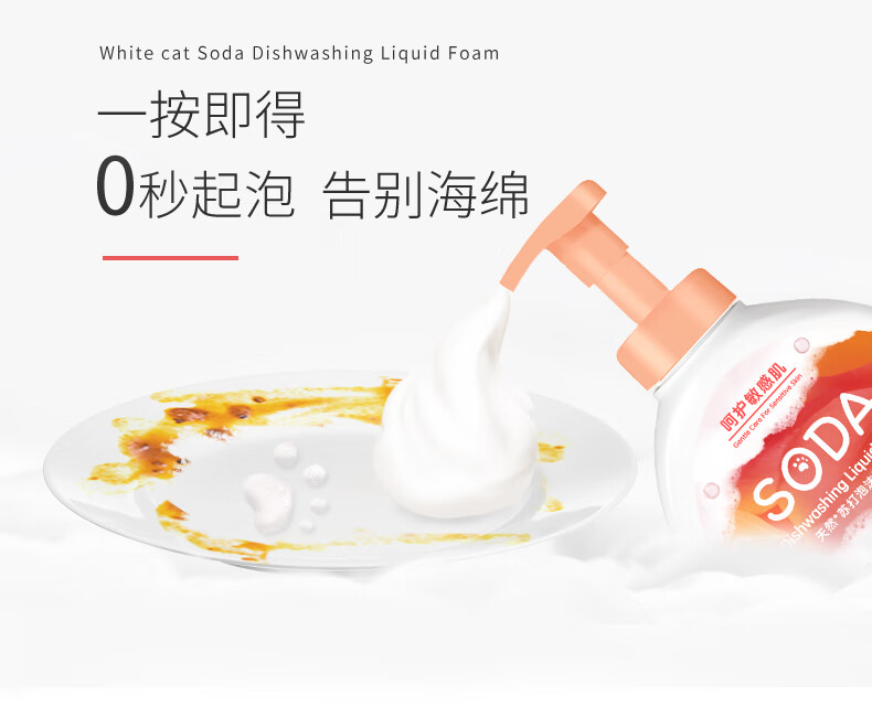 白猫天然苏打泡沫洗洁精400g