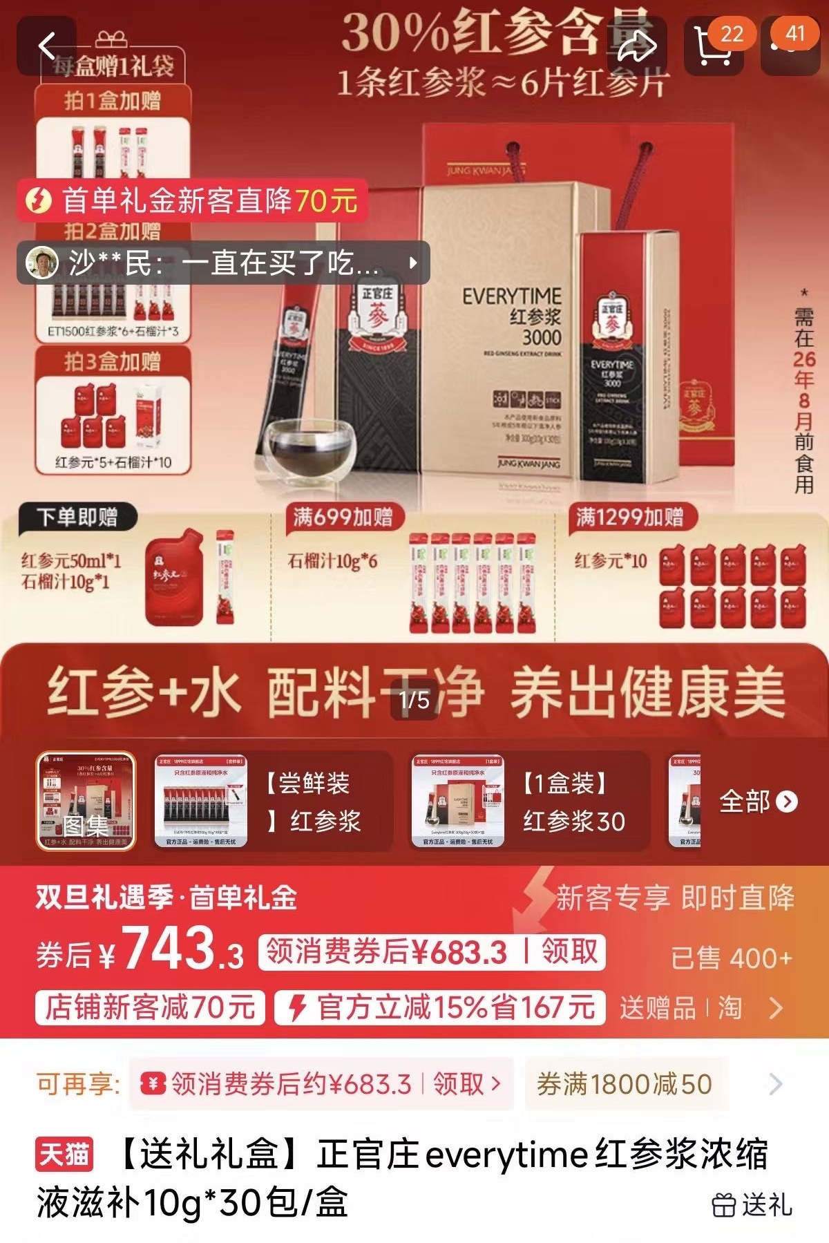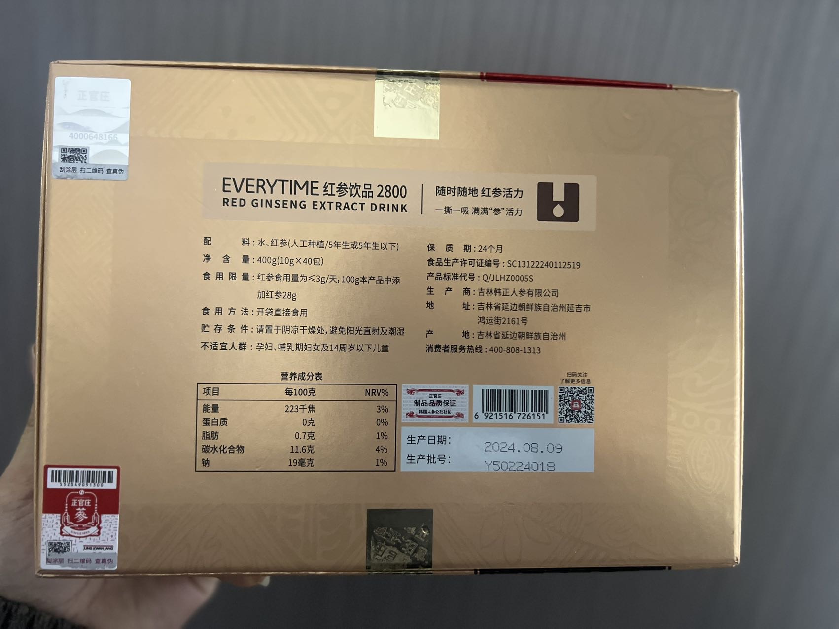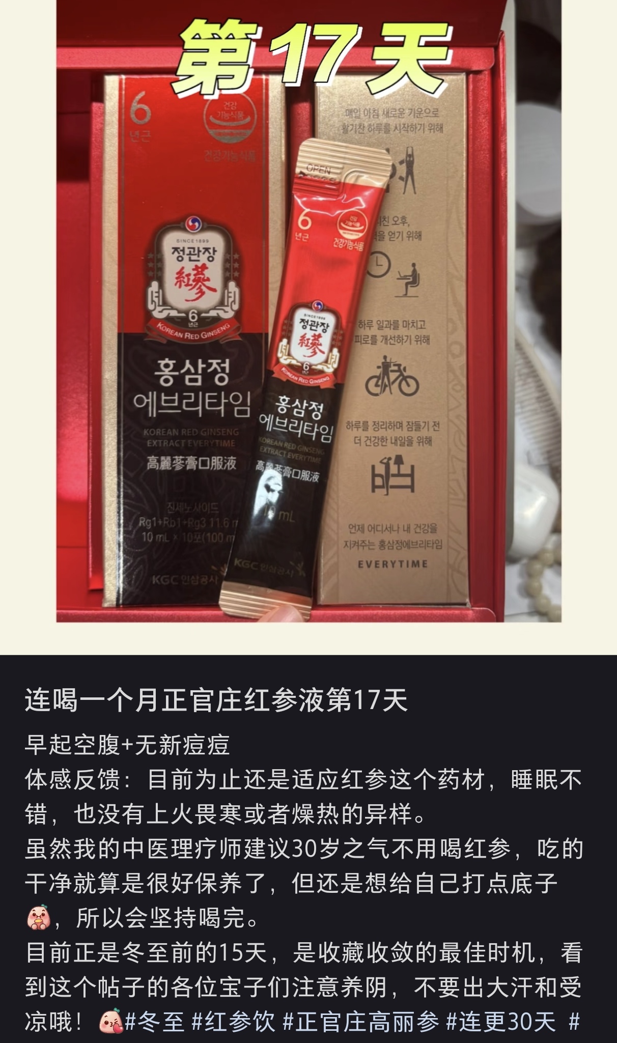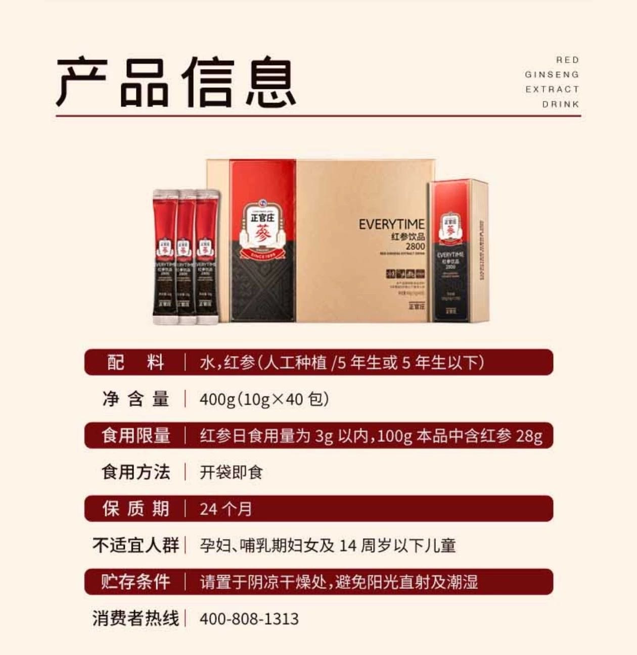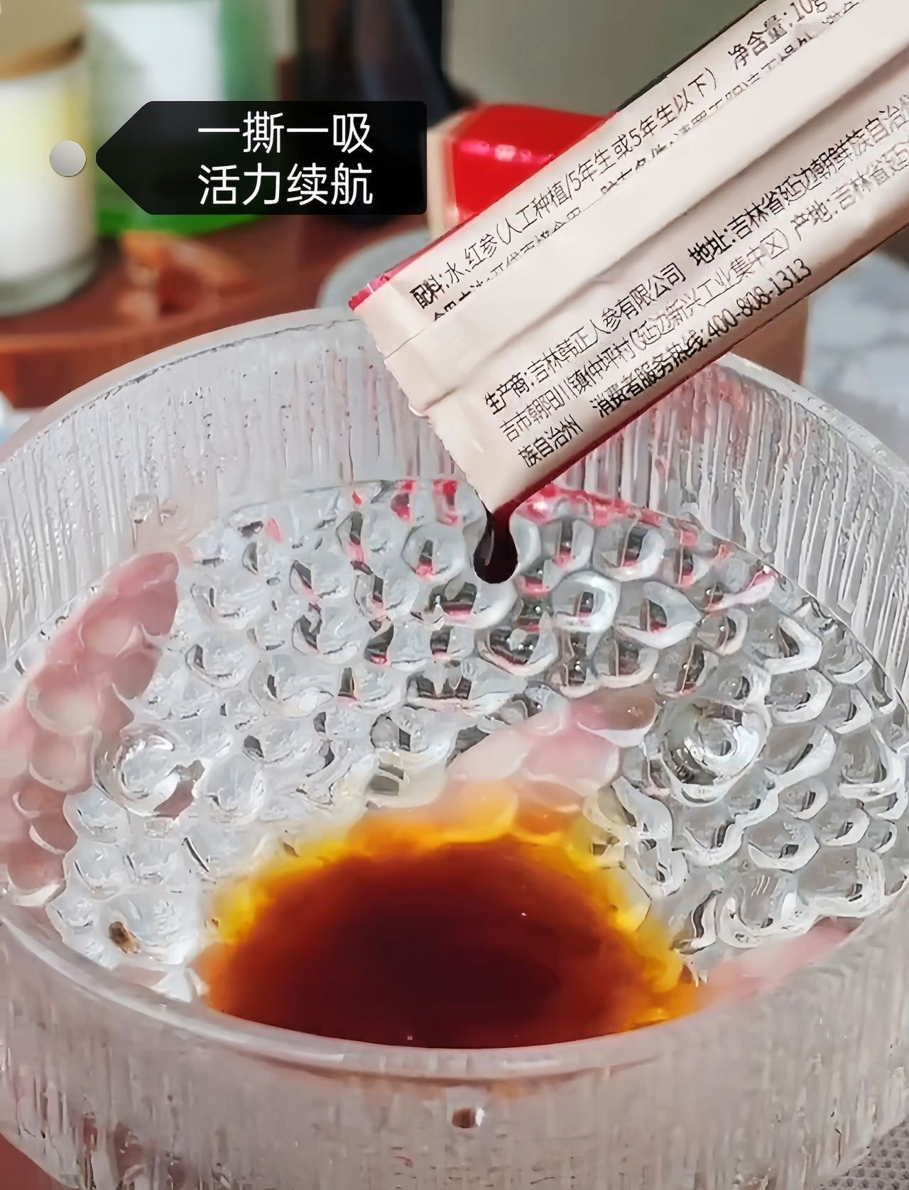 百年制参技术,5年参纯原液,增加免疫力,32种人参精华,气血双补,助眠抗疲劳。配料只有红参和水,每100g含28g红参。