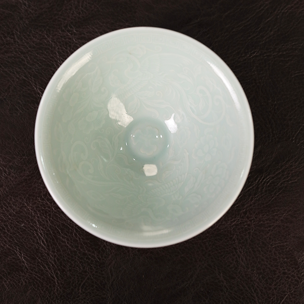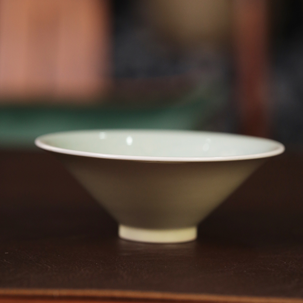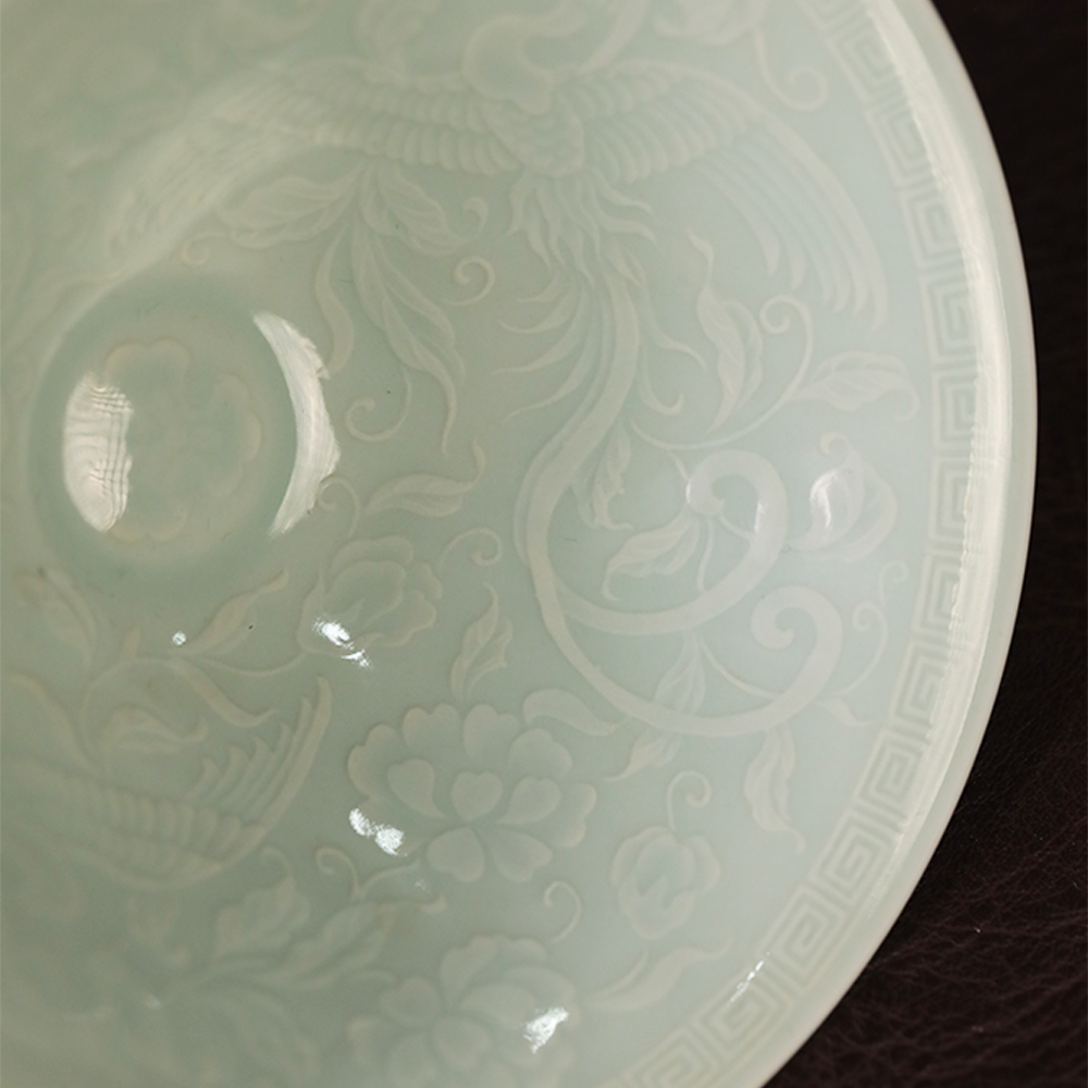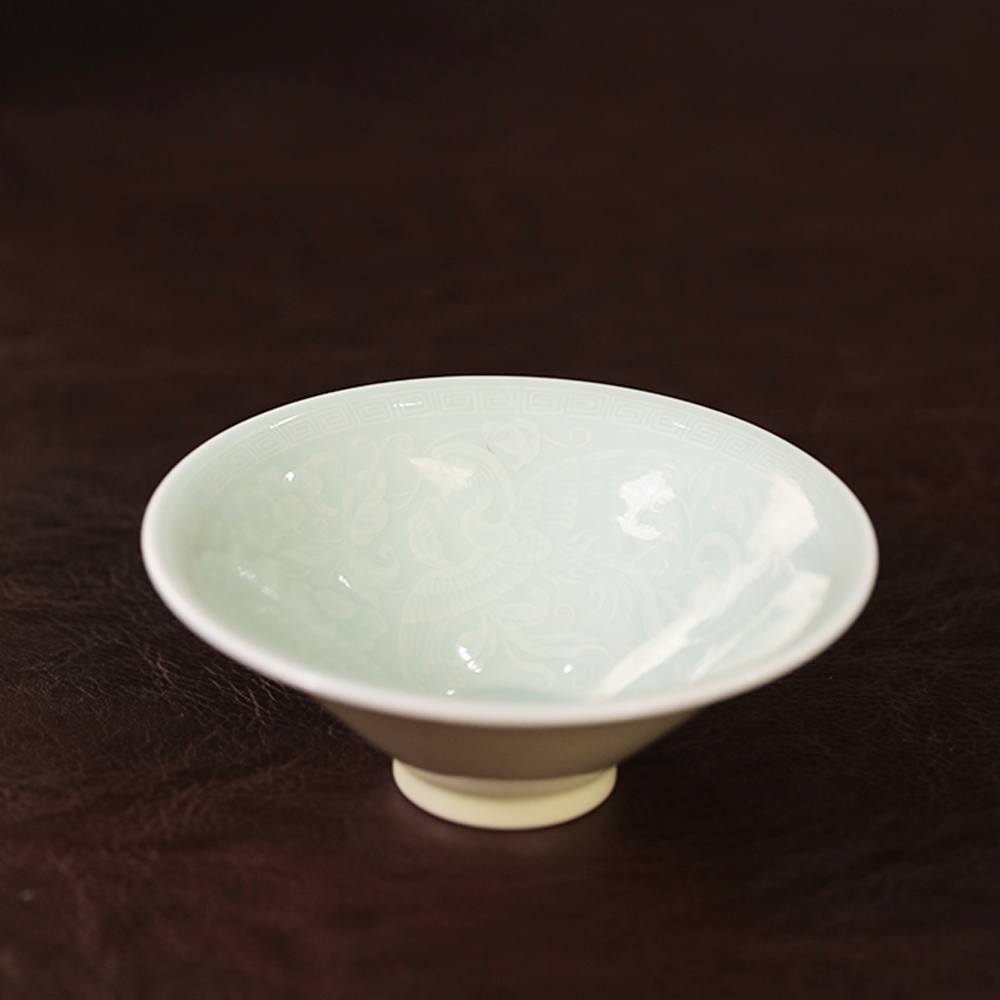 倚云煮泉内模印凤凰斗笠米黄釉