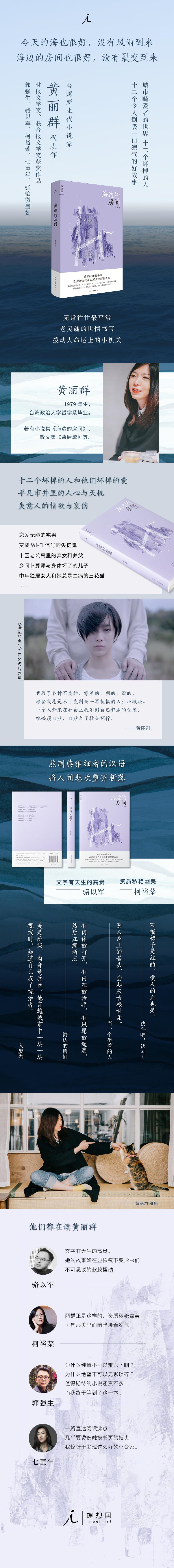 ★ 无常往往最平常,台湾新生代小说家黄丽群代表作,简体首次出版——荣获台湾多项文学大奖、两岸跨世代文学家盛赞、豆瓣高人气期待华语小说《海边的房间》盛夏来袭。黄丽群是台湾新生代小说家代表人物,短篇小说集《海边的房间》荣获时报文学奖、联合报文学奖、林荣三文学奖等华文奖项,同名小说改编影片入选金马影展。简体版首次推出,作者亲选篇目,新增3篇新作,是其二十余年写作生涯的结晶。 ★ 爱的卜算师,老灵魂的世情写作,拨动大命运上的小机关——黠慧之心,刁钻之笔,小说家黄丽群熬制典雅细密的汉语,故事精巧布局,卜算爱与命运,将人间悲欢大戏斩落整齐。老灵魂的世情写作,温热俏皮,幽冷美艳,拨动平凡市井里的人心与天机,失意人的情欲与哀伤,我们日常的困顿与无常。炉火纯青的汉语之美,沉迷进黄丽群爱的算式。 ★ 城市畸爱者的世界,十二个坏掉的人,十二个令人倒吸一口凉气的好故事——写给孤独患者的恋歌,人生逆旅中的安顿。 “我写了各种不美的,零星的,凋的,毁的,那些我总是不可克制而一再抚摸的人生小瑕疵。一个人如果在社会上找不到自己舒适的位置,就必须自欺,自欺久了就会坏掉。”语言的俏皮与一个个意料之外被冰冻的反转结尾,形成黄丽群作品独特的文字张力。 ★ “已经很久没有一路直达阅读沸点,皮肤被烫伤的感觉了。”郭强生、骆以军、柯裕棻、张怡微、七堇年等两岸作家盛赞——“资质秾艳幽美,可是那美里面暗暗渗着凉气。黄丽群的文字温煦如日,速如风雨。晴日静好的午后,还觉得太平岁月温暖快乐,一转眼,不知哪来的乌云罩顶,大雨倾盆落下。”