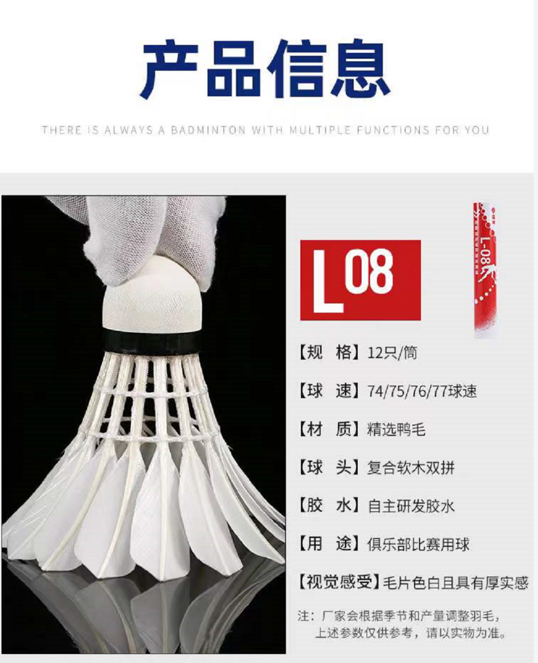 翎美 羽毛球 L08