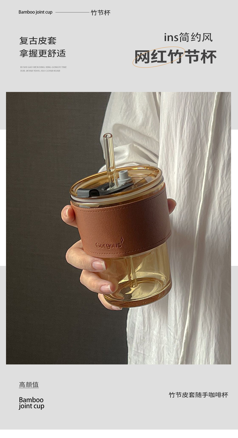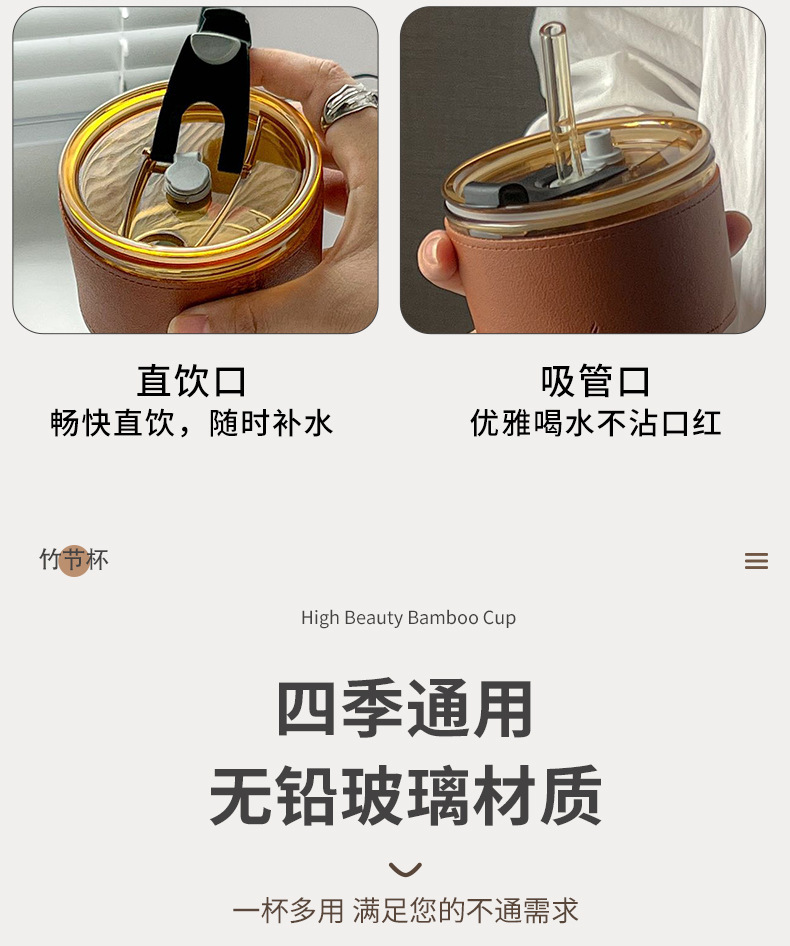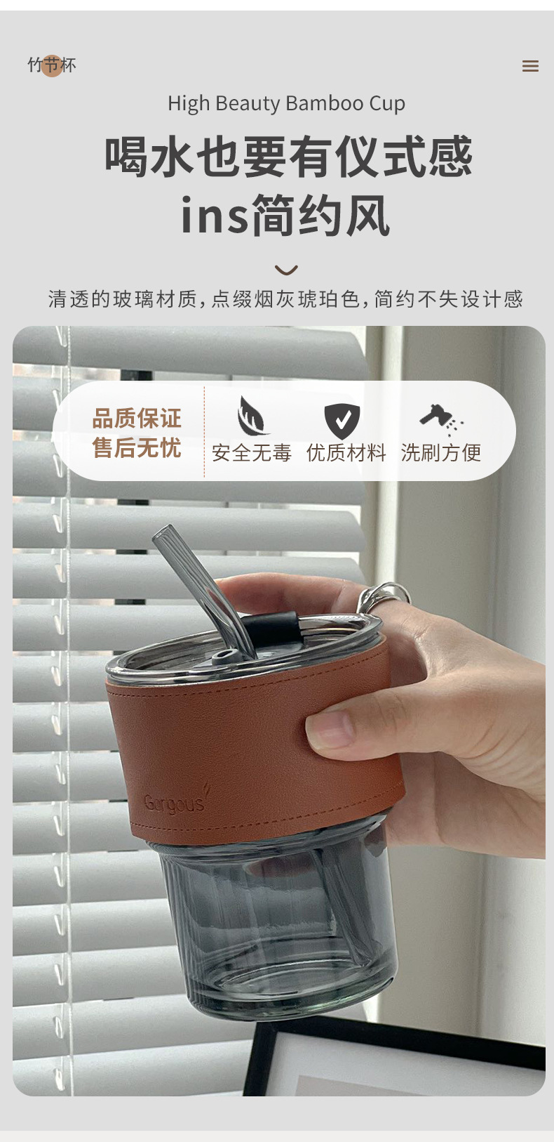 【ins简约风!网红竹节杯】网红竹节杯ins风夏季水杯吸管杯伴手礼广告杯家用水杯双饮口玻璃,食品级玻璃材质,健康卫生,安全无异味。ry