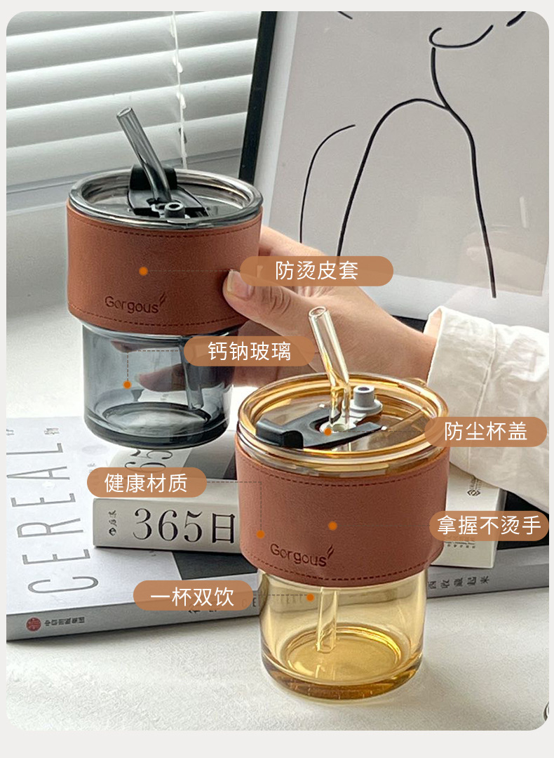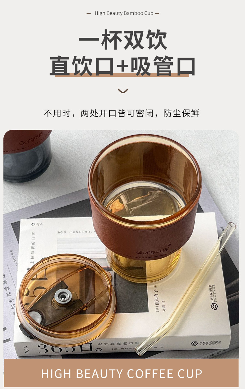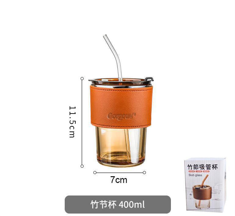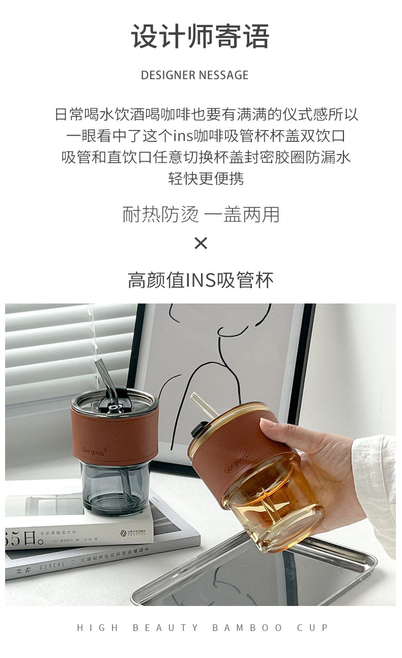 【ins简约风!网红竹节杯】网红竹节杯ins风夏季水杯吸管杯伴手礼广告杯家用水杯双饮口玻璃,食品级玻璃材质,健康卫生,安全无异味。ry
