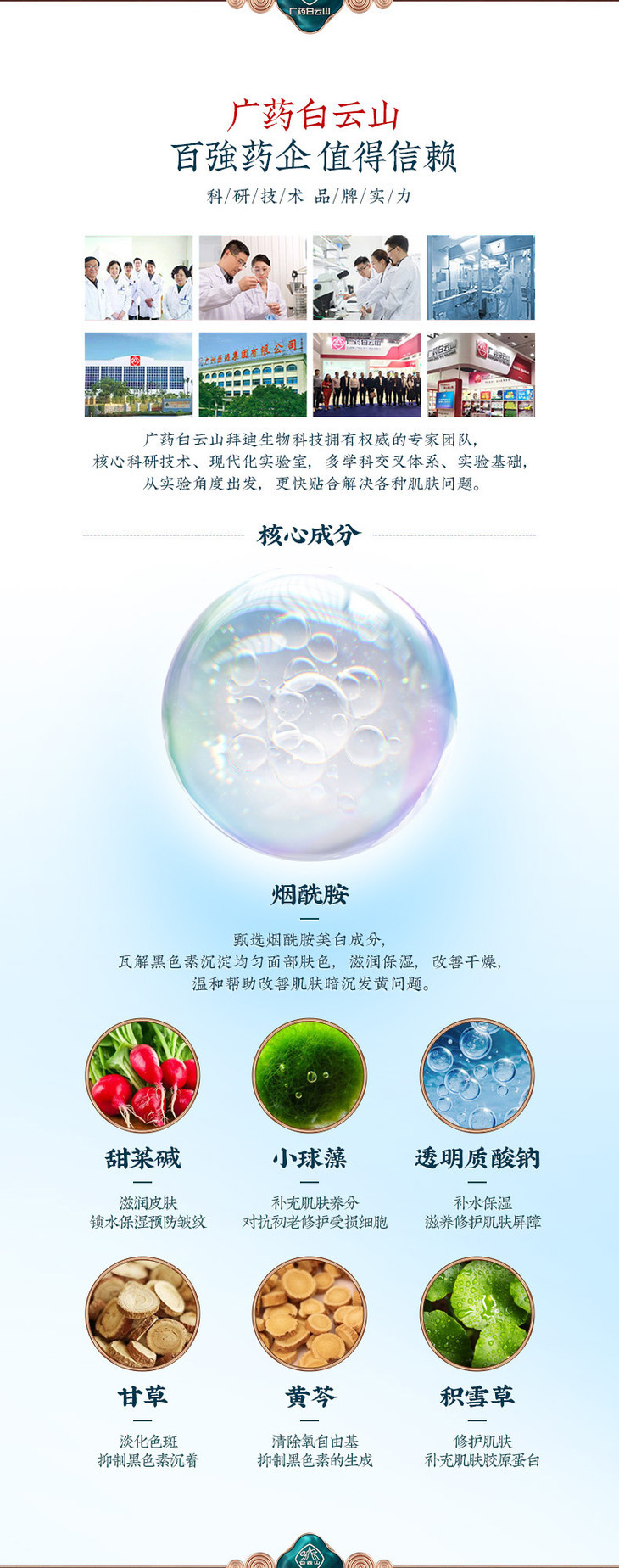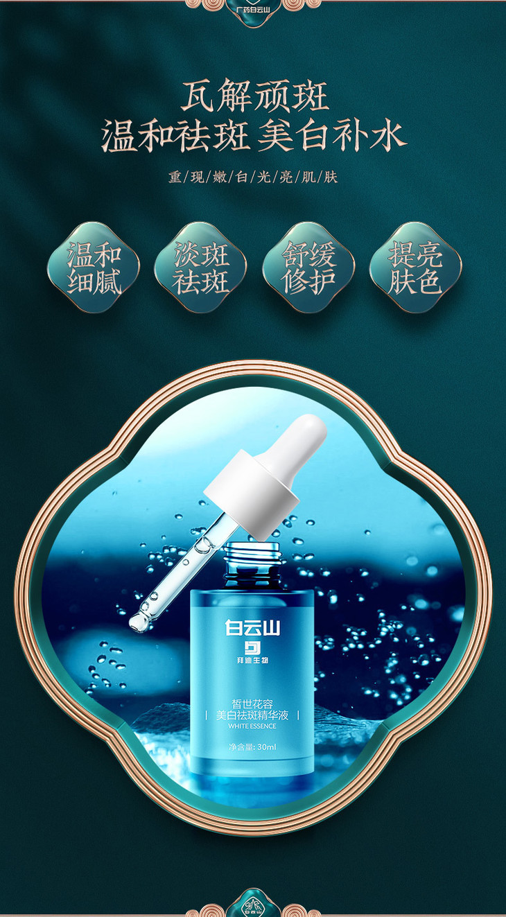 【广药出品 值得信任】美白祛斑 瓦解黑色素 靶向淡斑 改善暗黄 舒缓修复 提亮肤色 让你重现嫩白光亮肌肤 白云山美白淡斑精华液