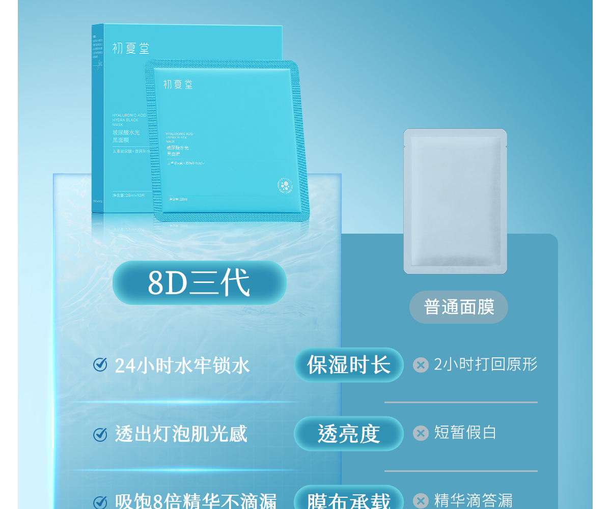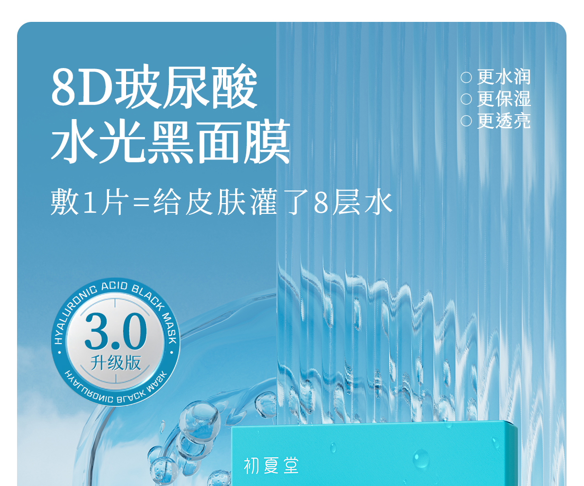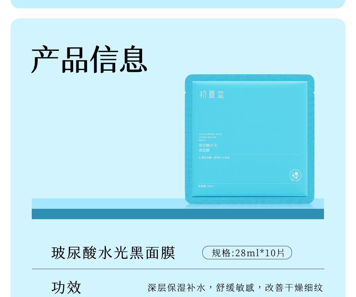 【干性肌肤】初夏堂玻尿酸水光黑面膜补水保湿控油淡化痘印清洁收缩毛孔正品女
