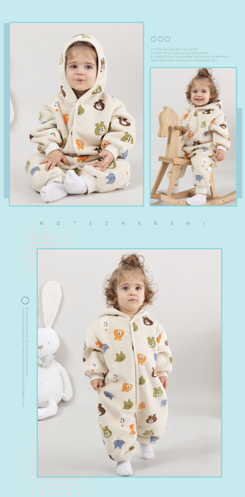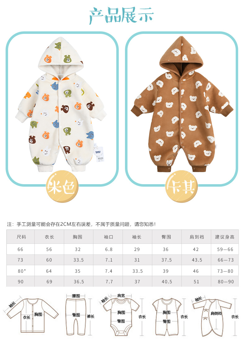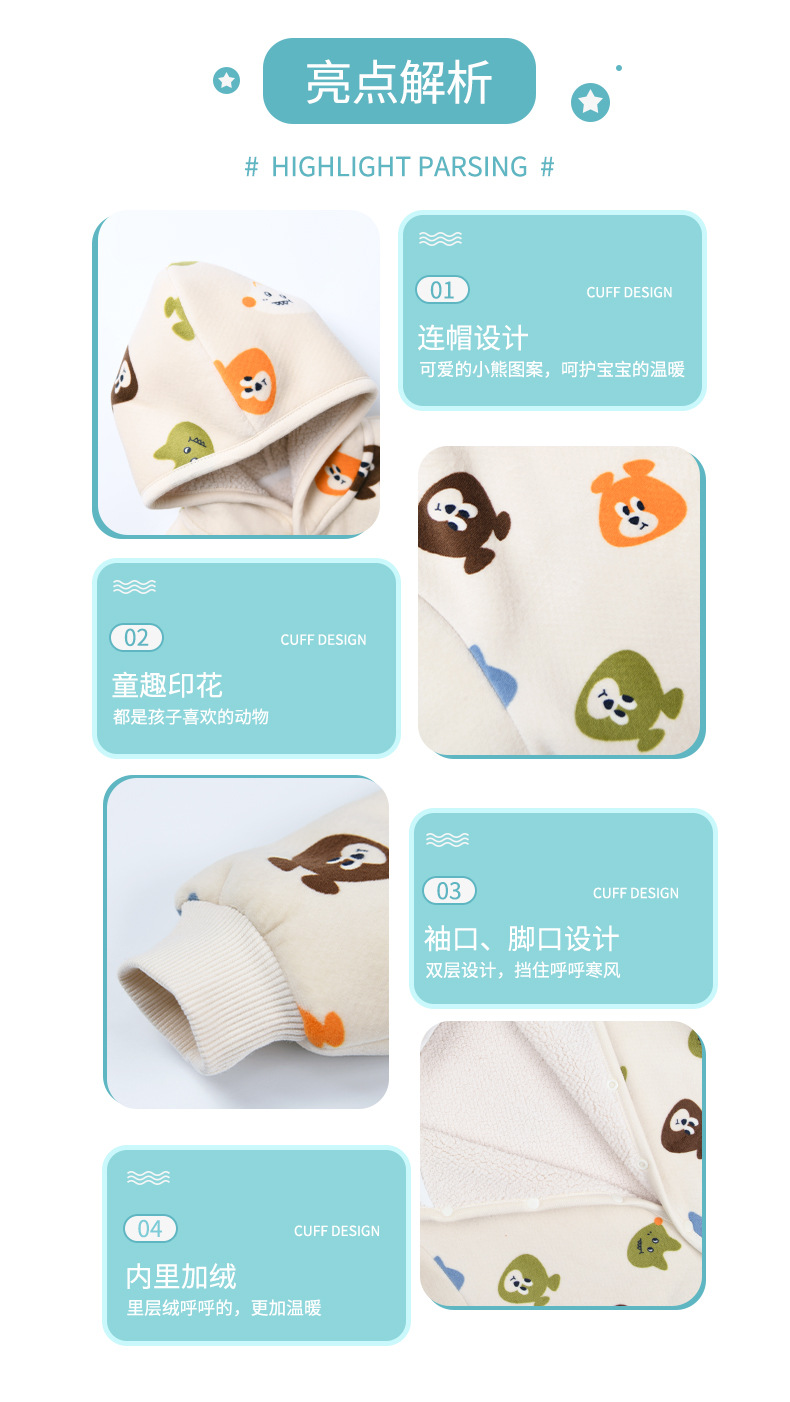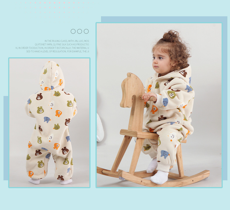 【动物乐园连帽羊羔绒爬爬服】婴儿连体衣服居家服春秋新款外出连体衣男女宝宝立体连帽哈衣爬服