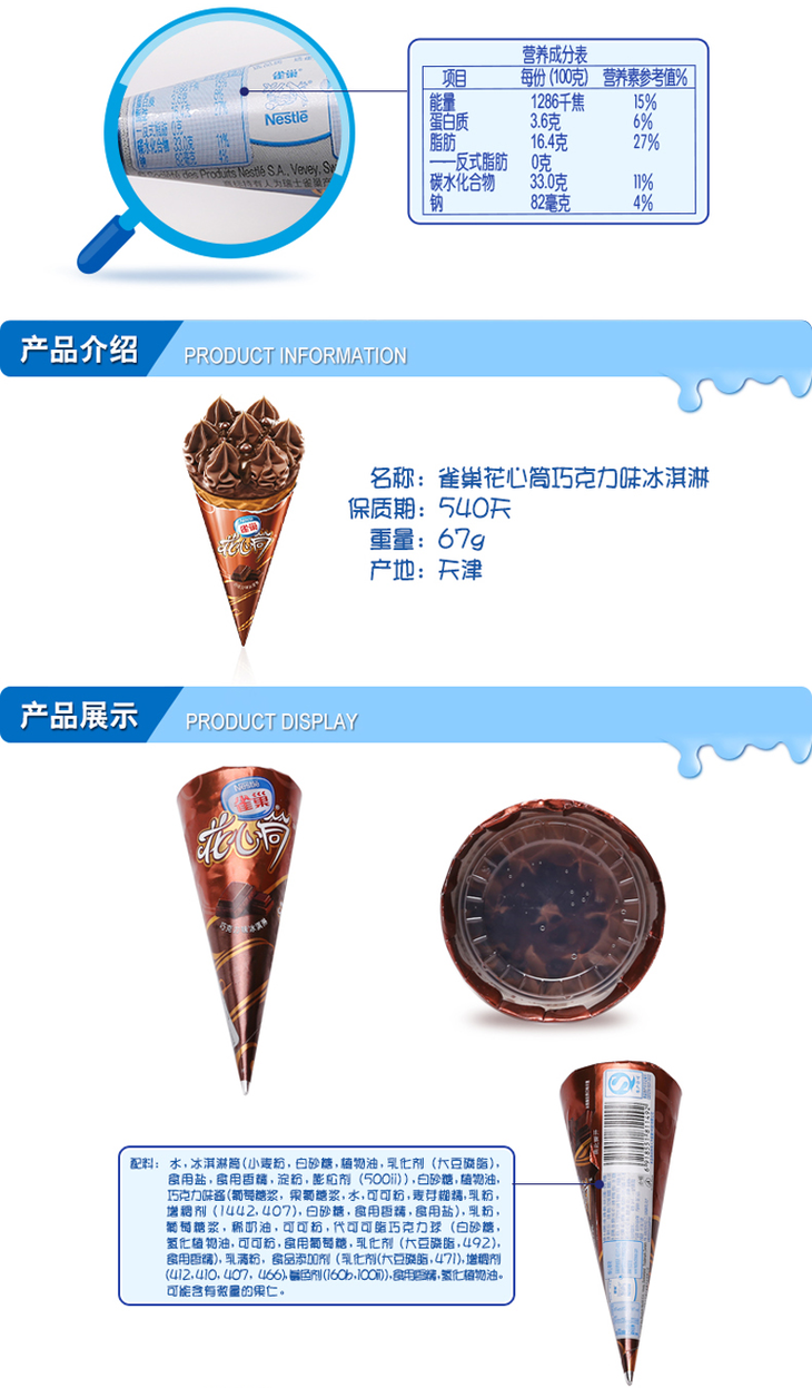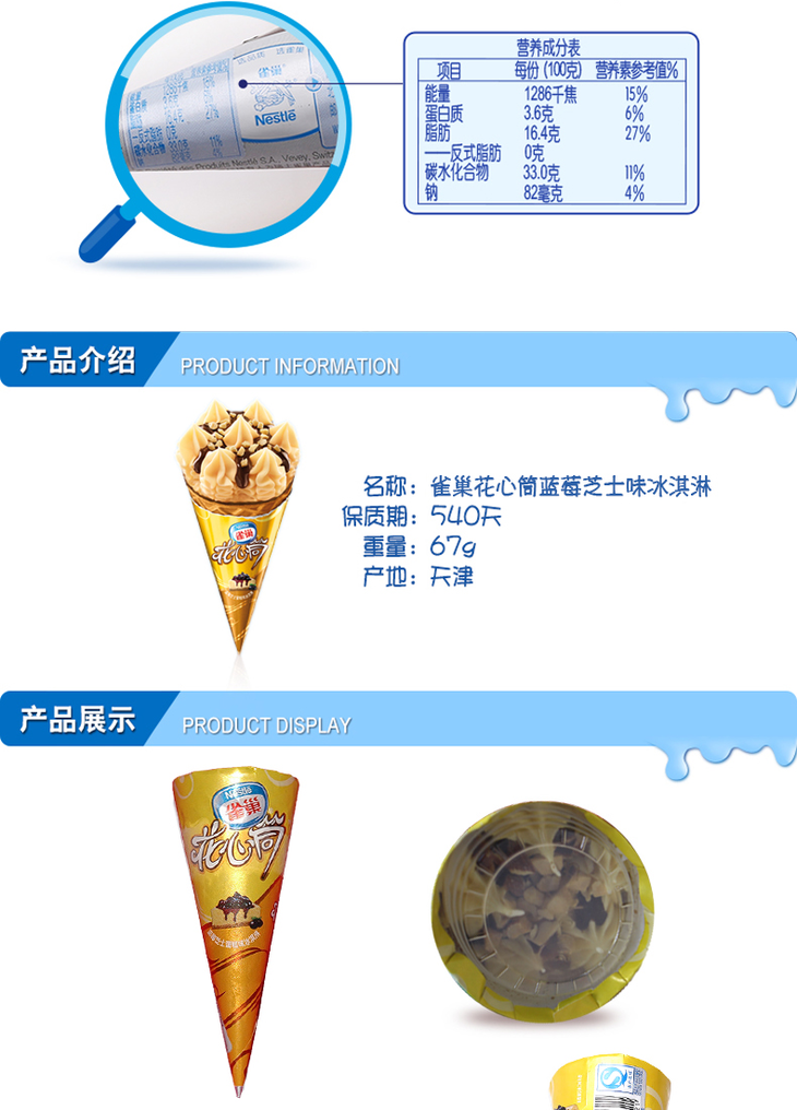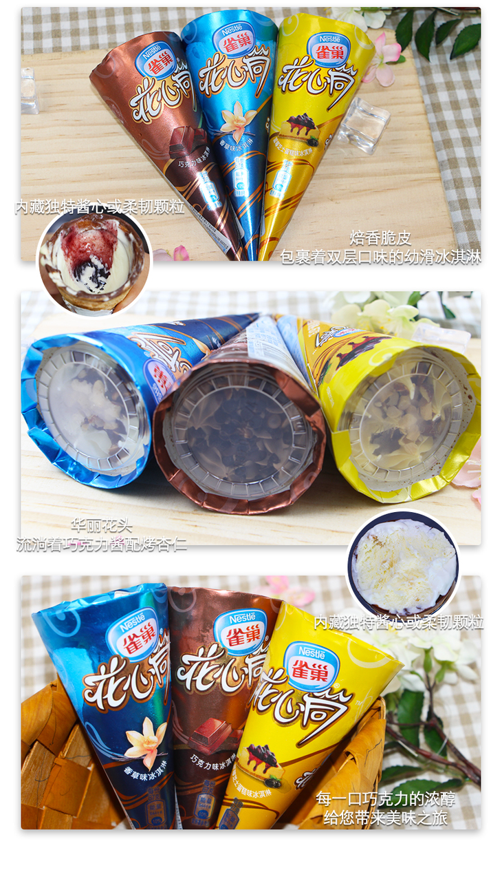 【1支】Nestle/雀巢 花心筒甜筒冰淇淋67g*1支(多种口味可选)
