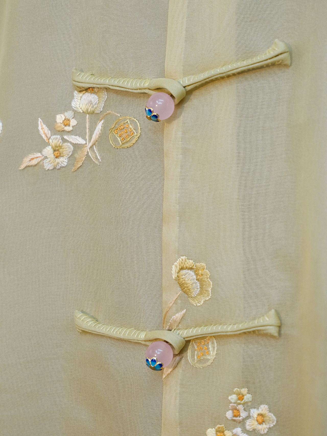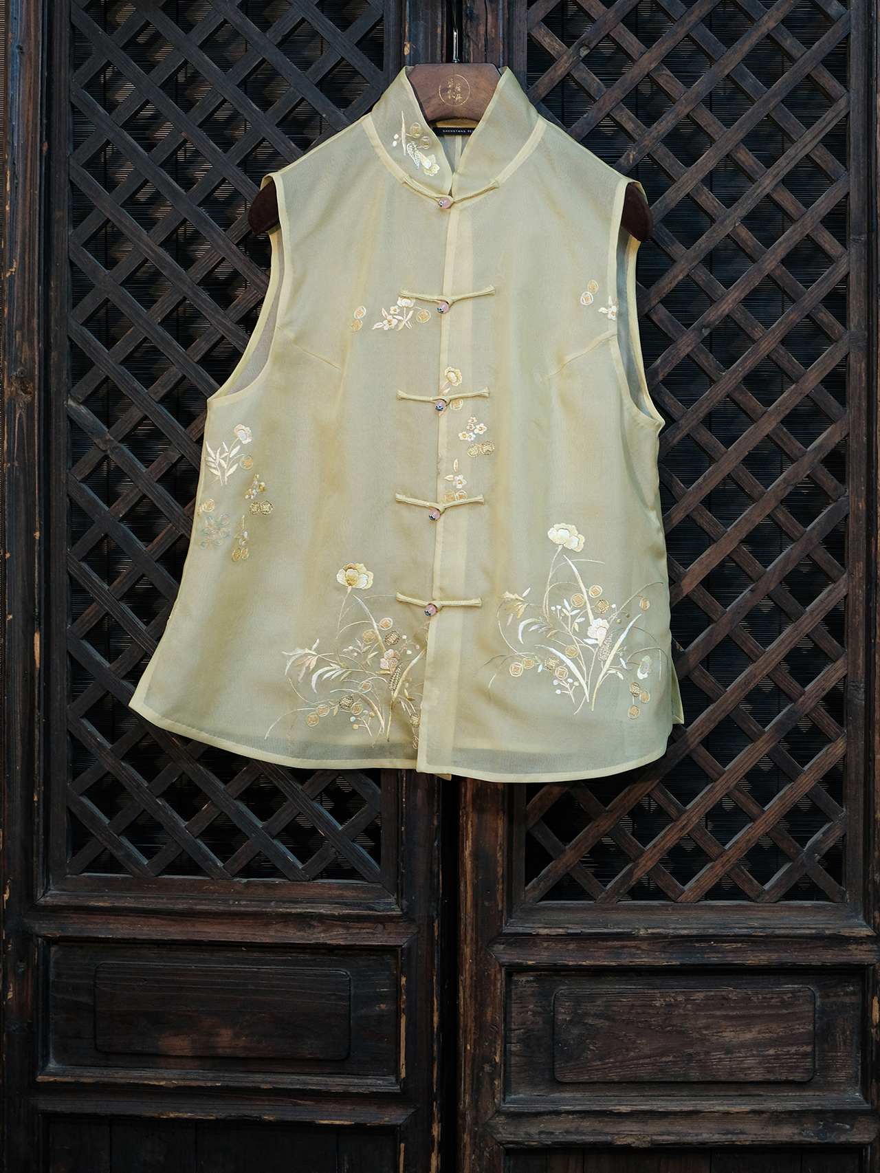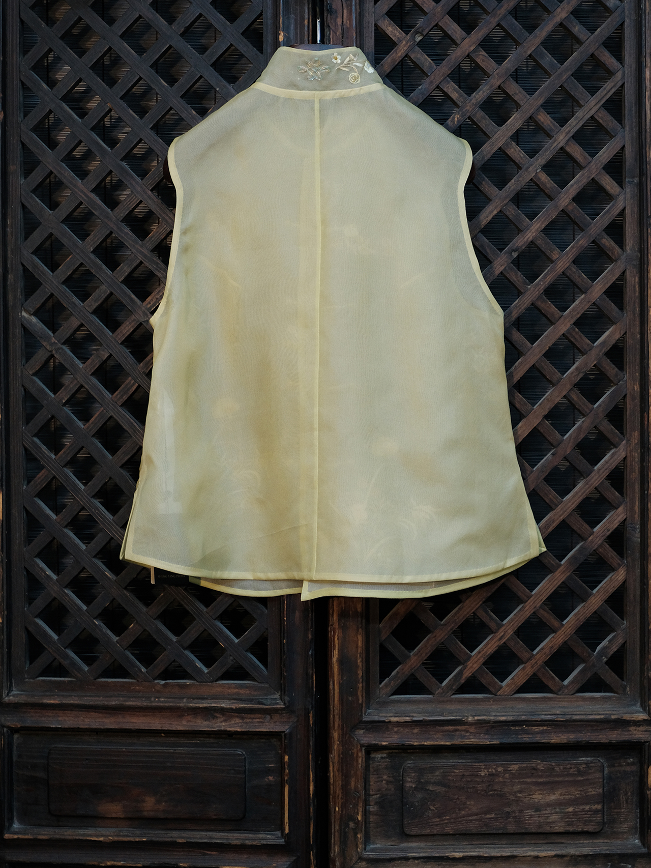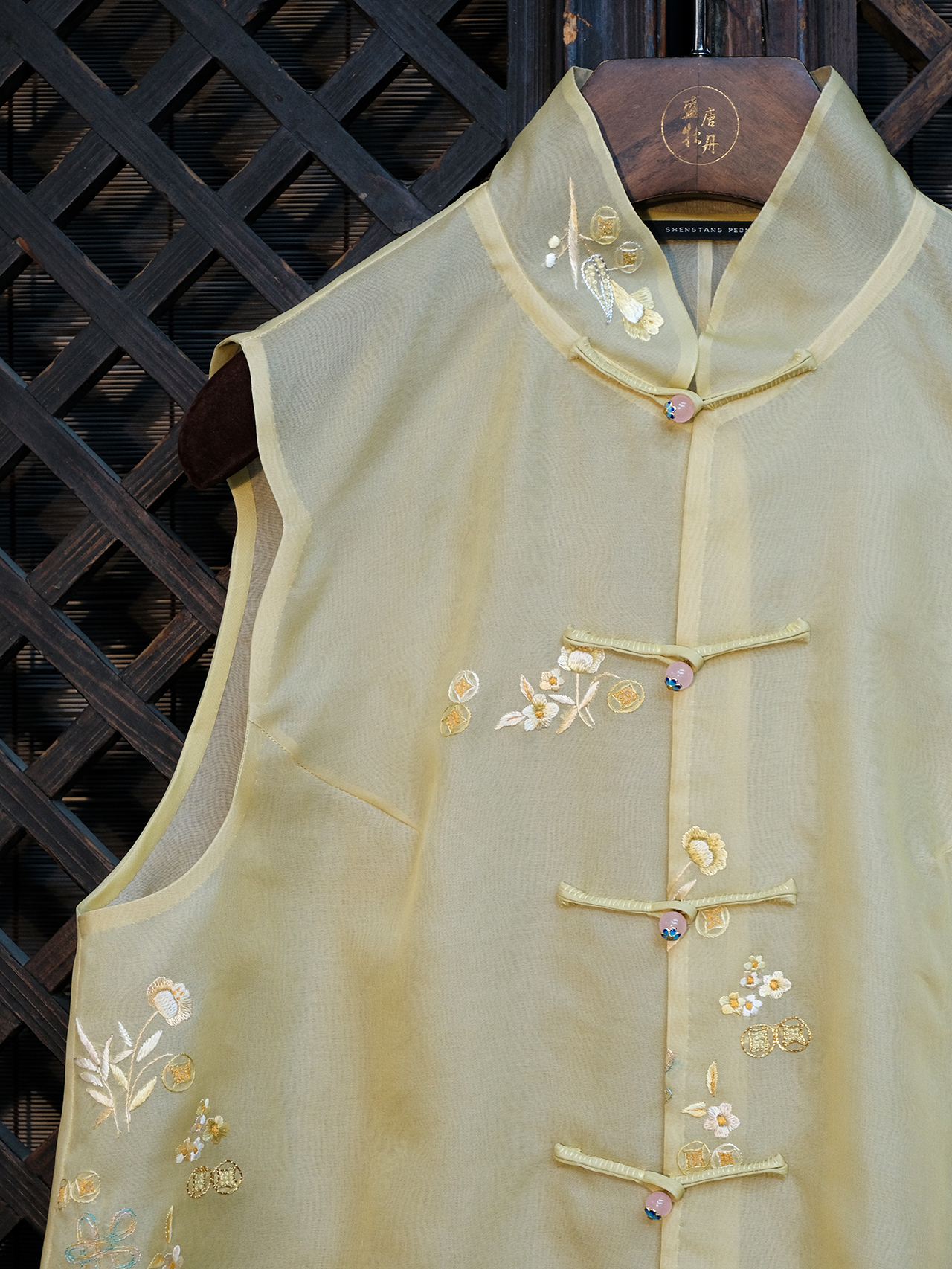 盛唐牡丹盛奢系列| 限量款| 高货-真丝绡手绣马甲-鹅黄色(特殊商品不退不换)
