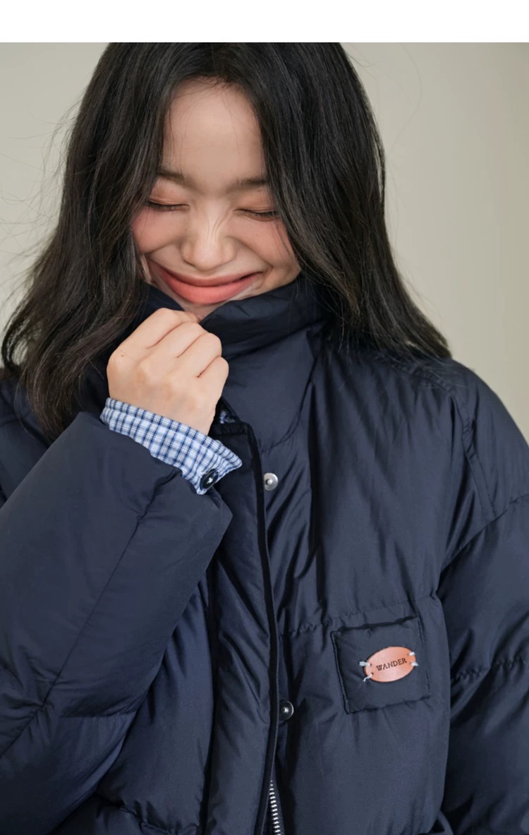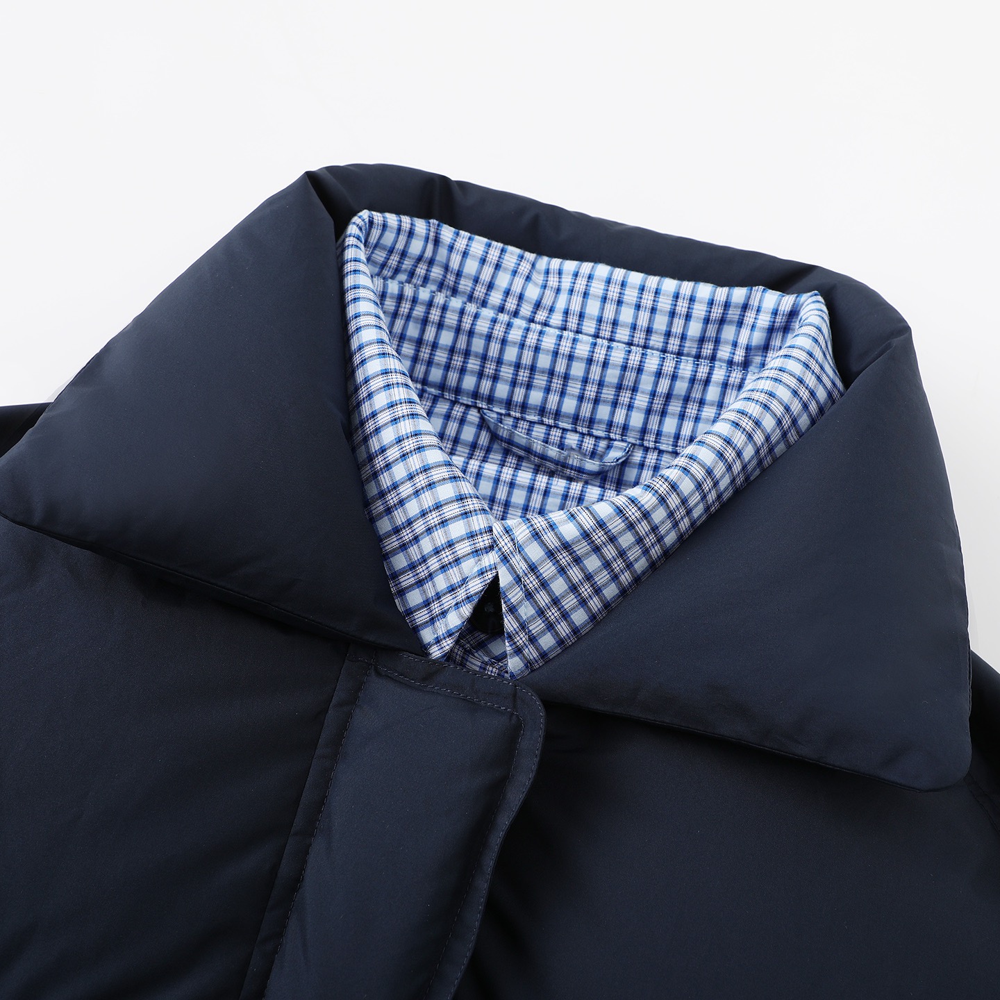 D112527假两件衬衫拼接羽绒服翻领外套冬季新款女休闲格子上衣
