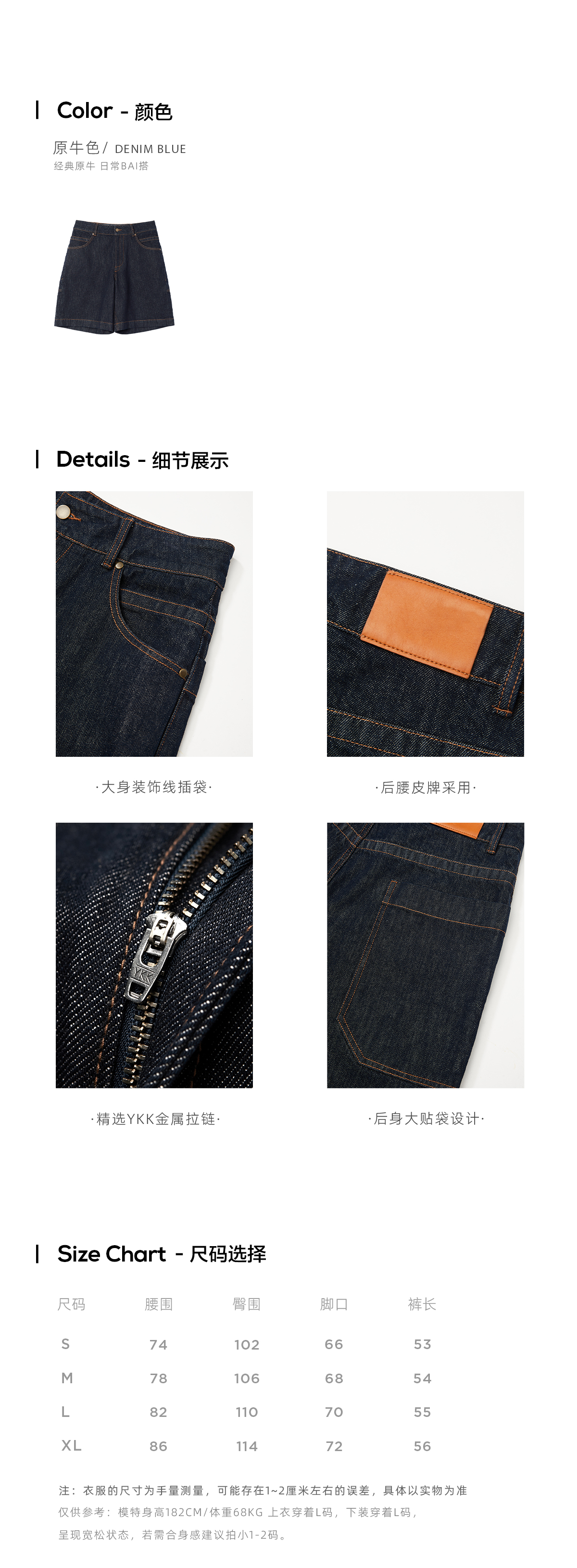 棉仓3631018005-【自在态度】不掉色原牛大袋廓形休闲短裤