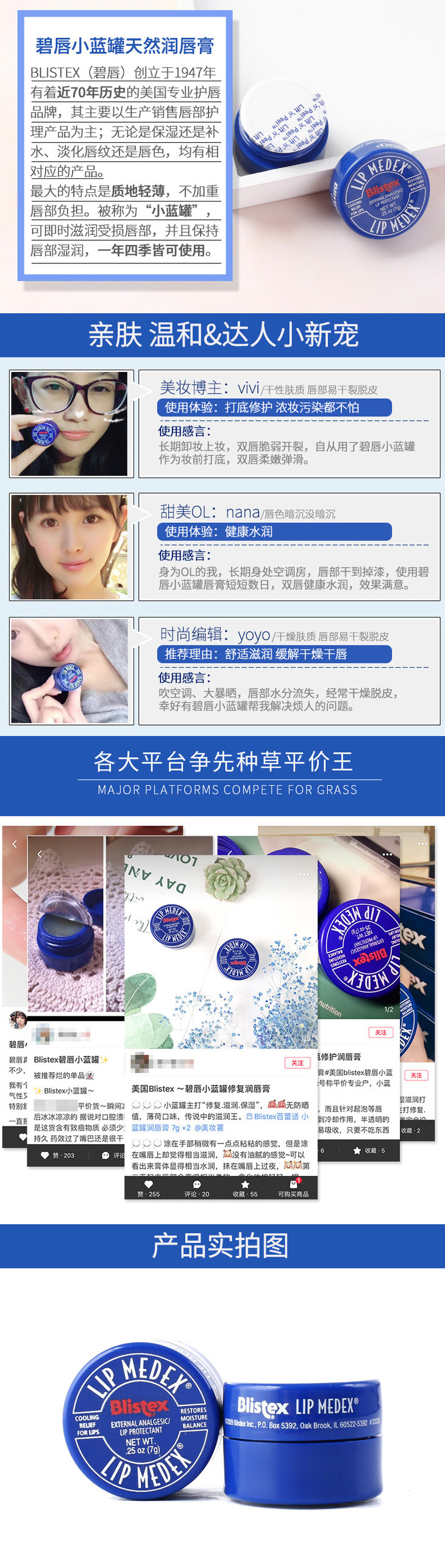 现货▲美国 Blistex碧唇小蓝罐润唇膏 补水滋润淡化唇纹防干裂
