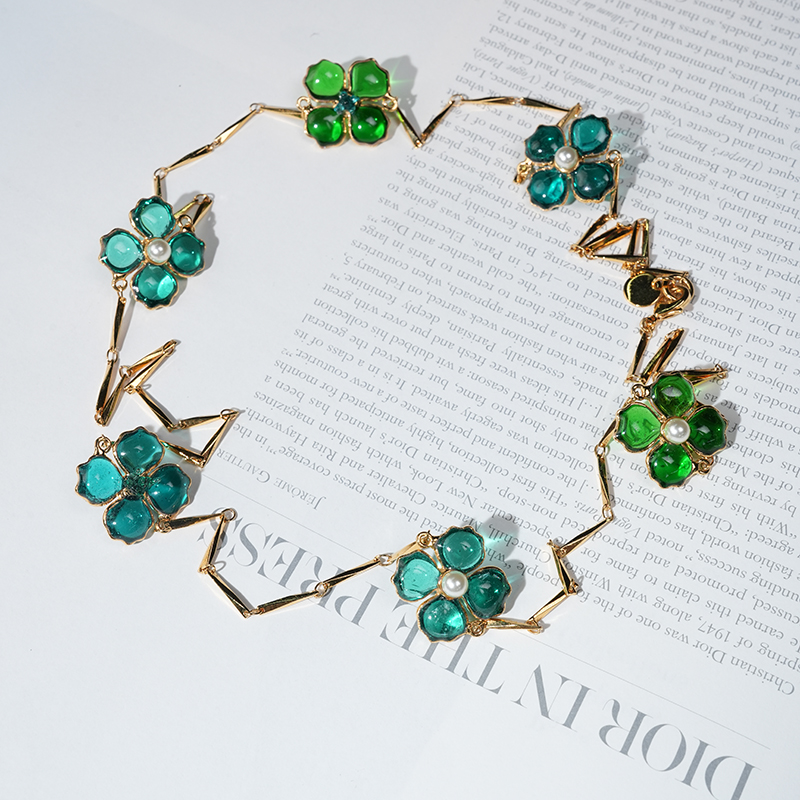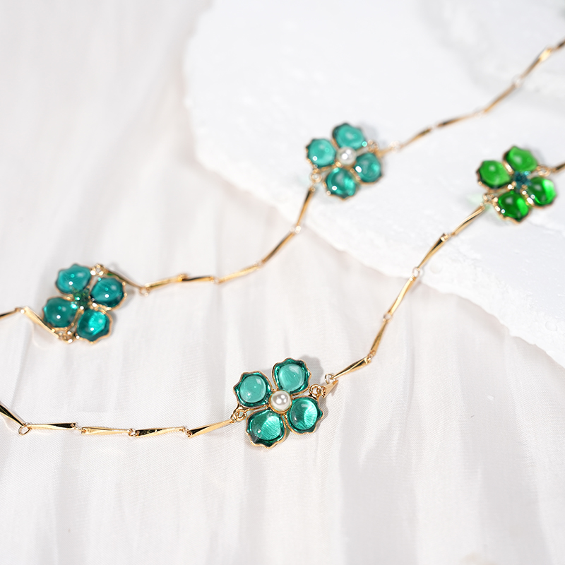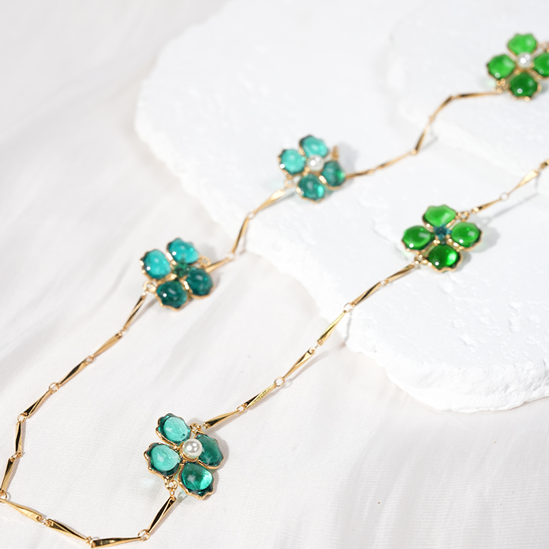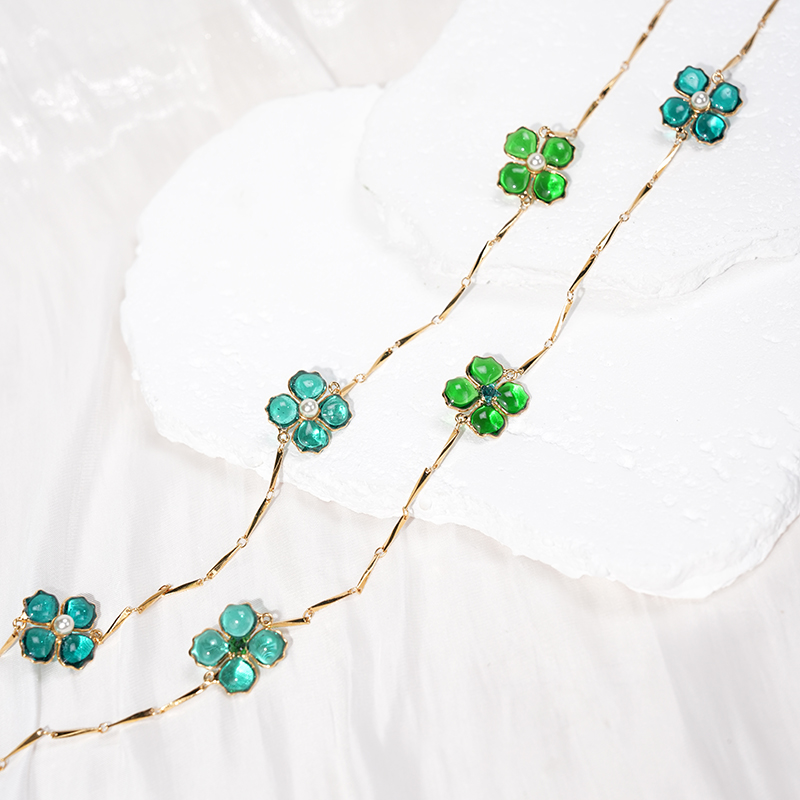 北京仓|Gripoix Paris-Clover-绿色 四叶草 珍珠 长项链[法国设计师]