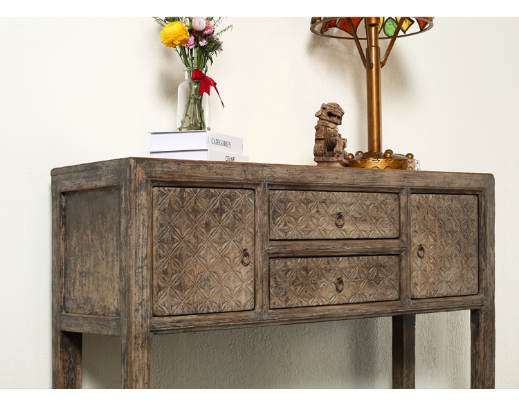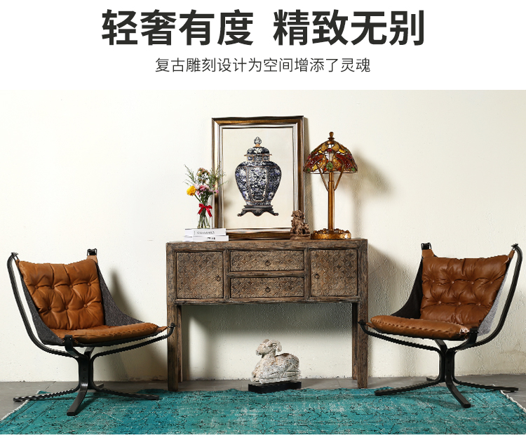 实木美式复古玄关桌艺术彩绘北欧置物架靠墙边柜走廊过道柜装饰柜