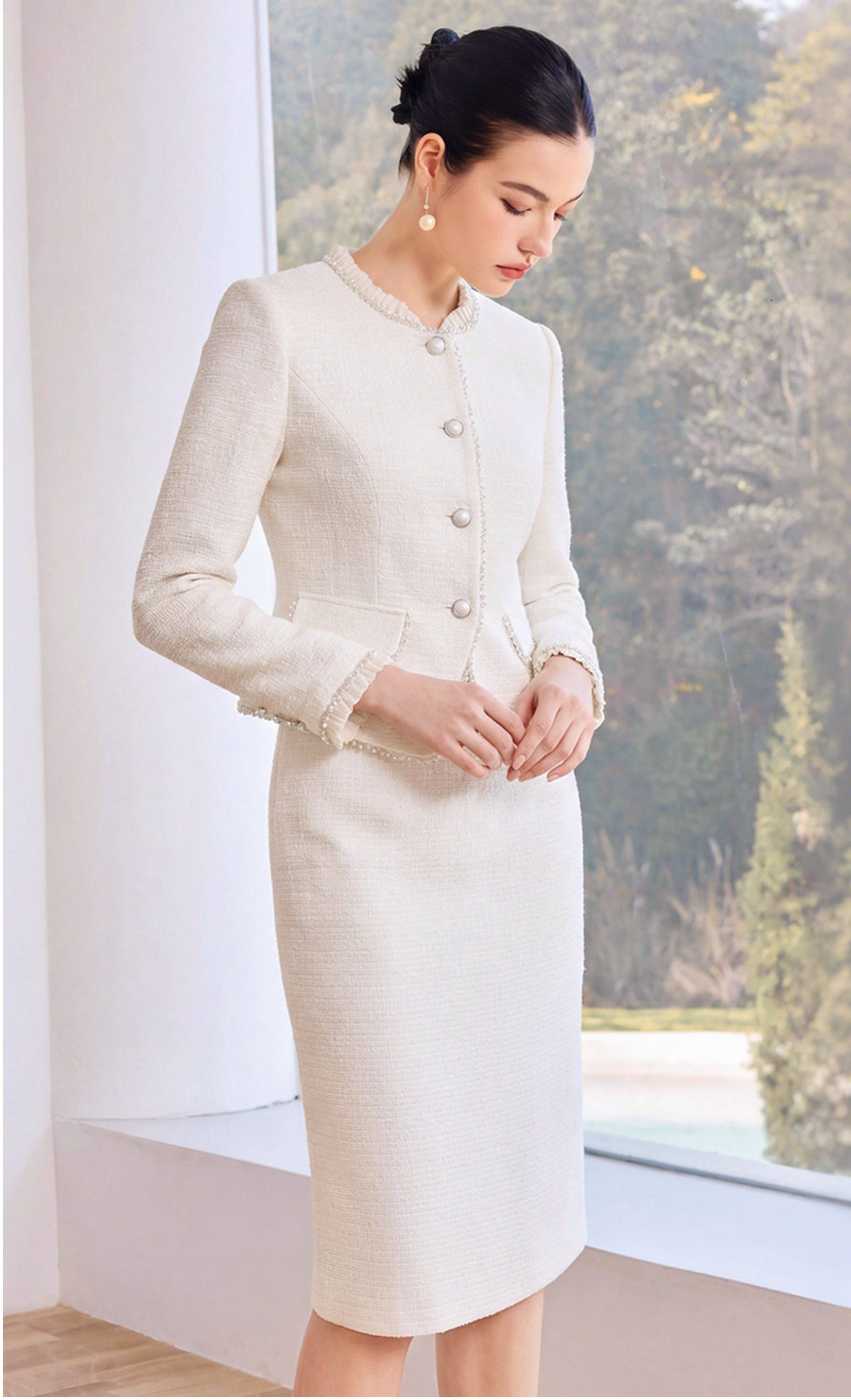 艾尚臣小香风重工钉珠西装套装女主持人显瘦职业高级感时尚套裙春