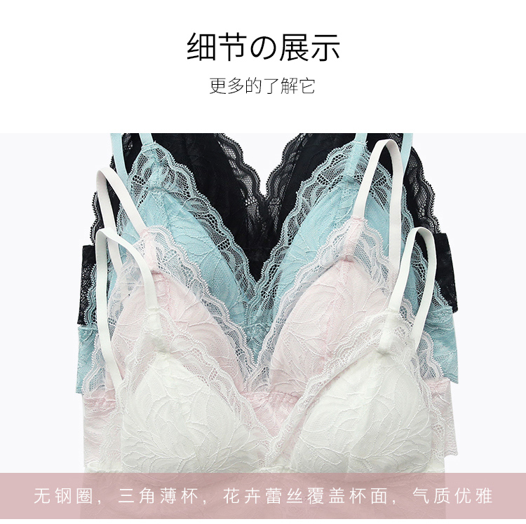 【新时尚Bralette文胸】法式内衣女无钢圈蕾丝文胸 超薄聚拢收副乳 法式优雅性感