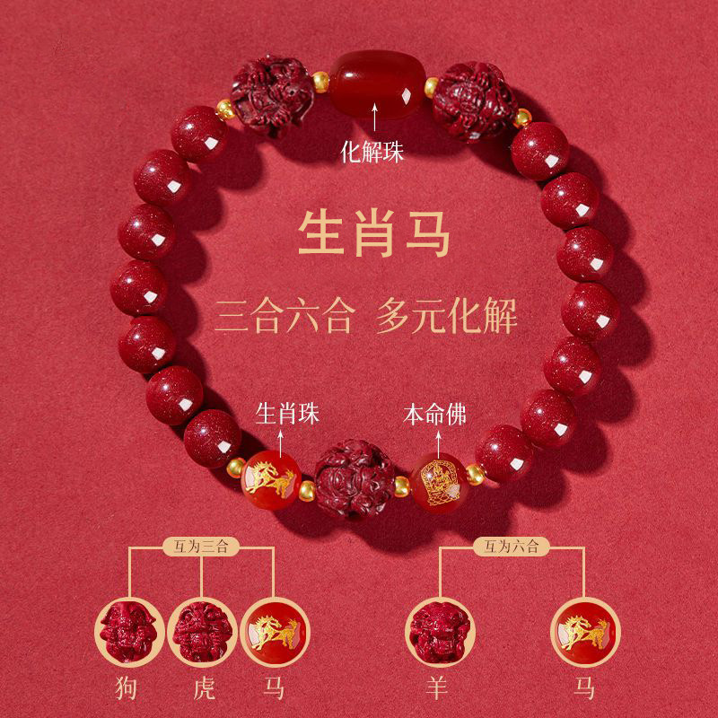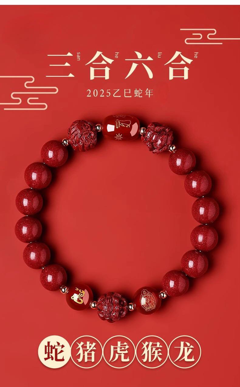 热卖中!珩钻 2025乙巳蛇年【三合六合朱砂手串】生肖款朱砂手链 兼顾三合六合 颗颗饱满 巨显白 男女多款可选