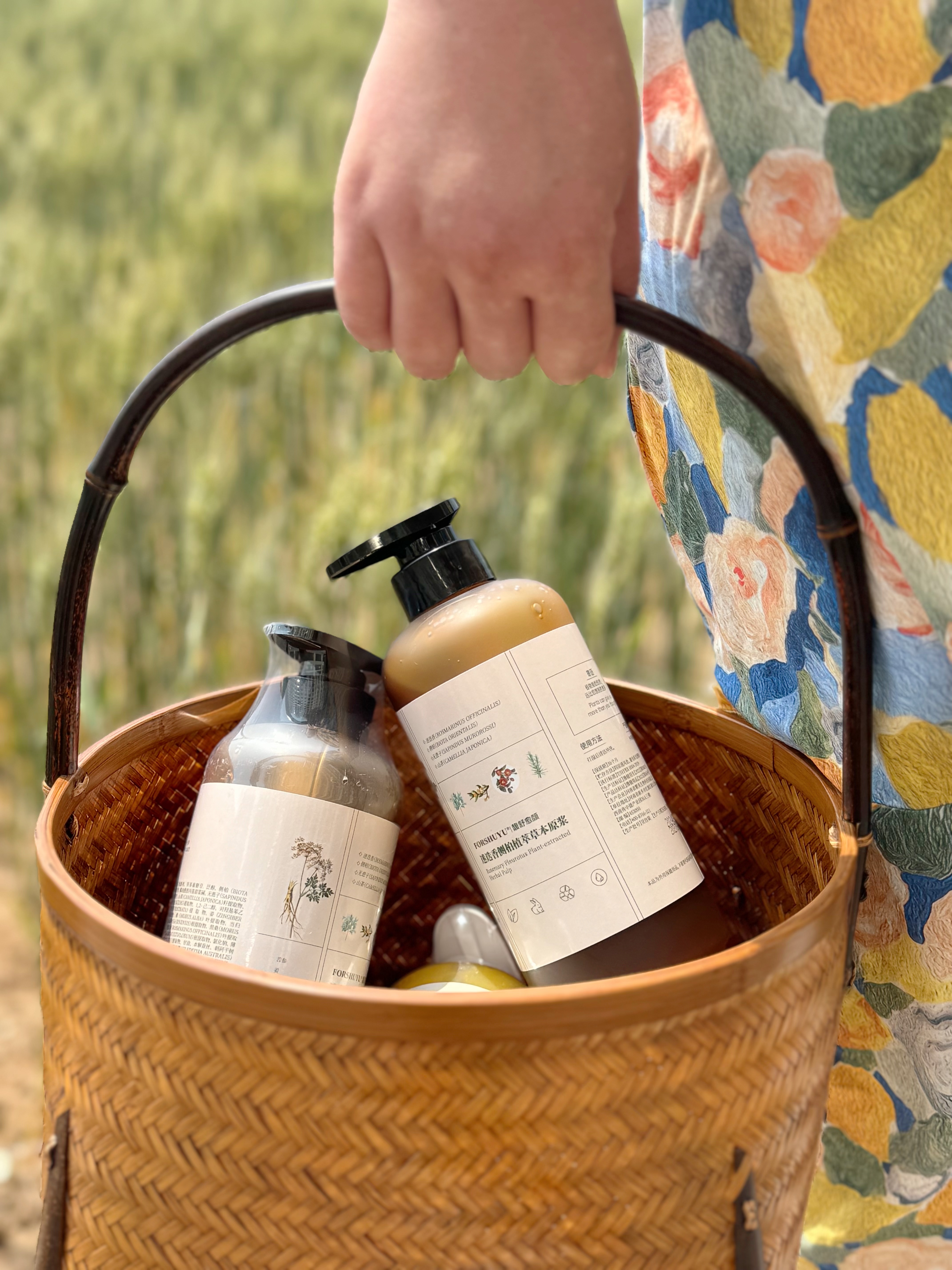 采用侧柏、无患子、山茶籽、苦参、鳢肠、姜、桑叶、当归、黑桑、迷迭香、何首乌、薄荷、小果皂荚等13味纯中药熬煮浓缩而成的水相入洗发水体系: