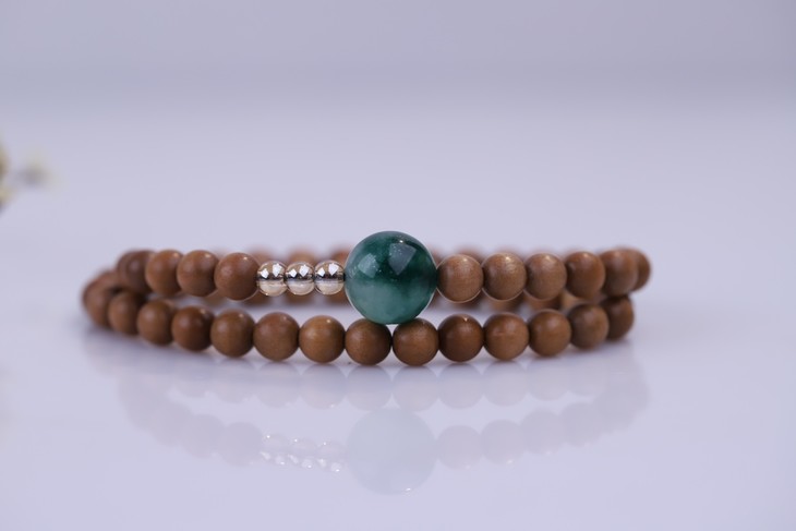 【规格】精品老山檀香极品黑肉0.6(54颗)+水晶石+孔雀石1.0