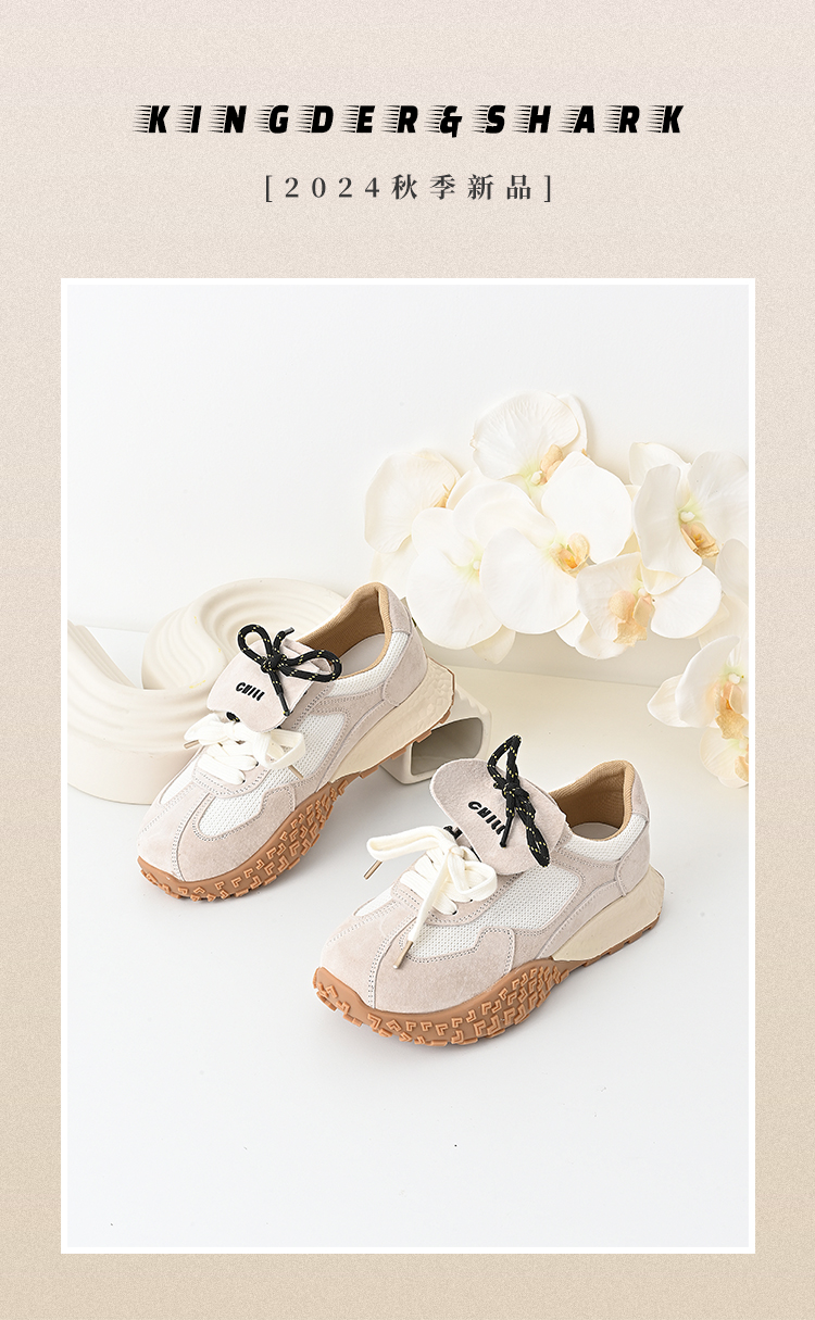 经典鲨2024年秋新款韩版时尚拼色系带平底跑步运动休闲鞋女KW353-D37011