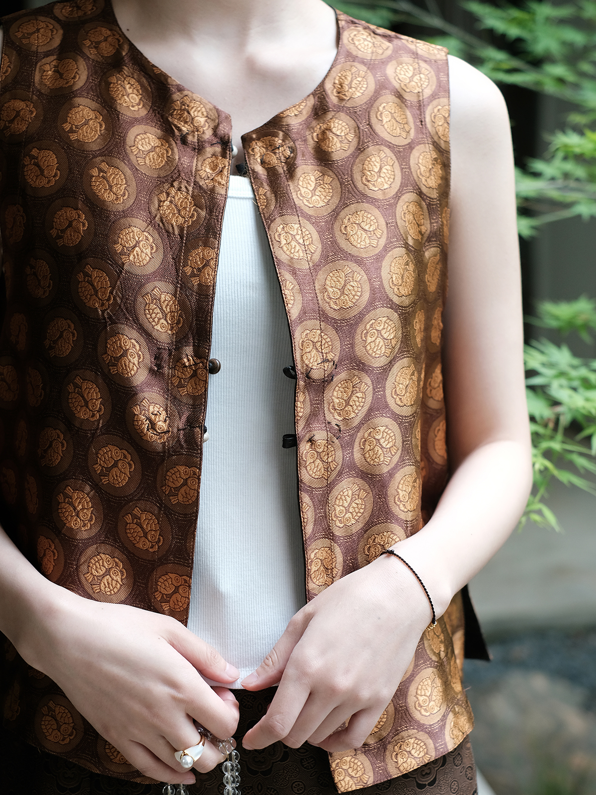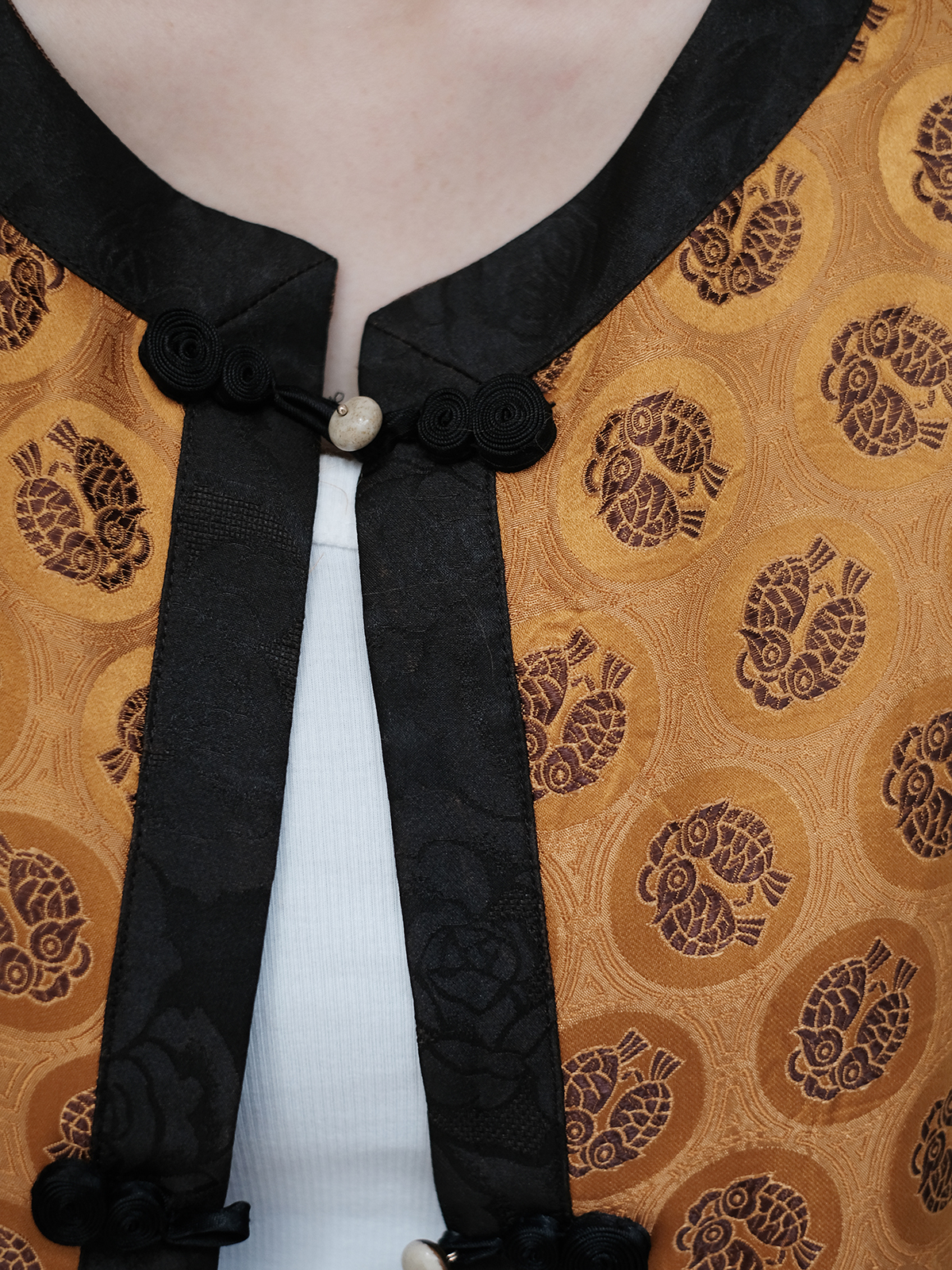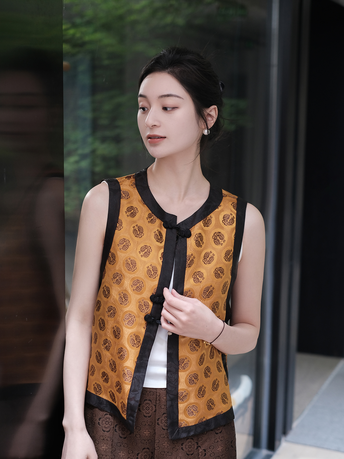 盛唐婧 |限量款 真丝宋锦双鱼马甲-金黄
