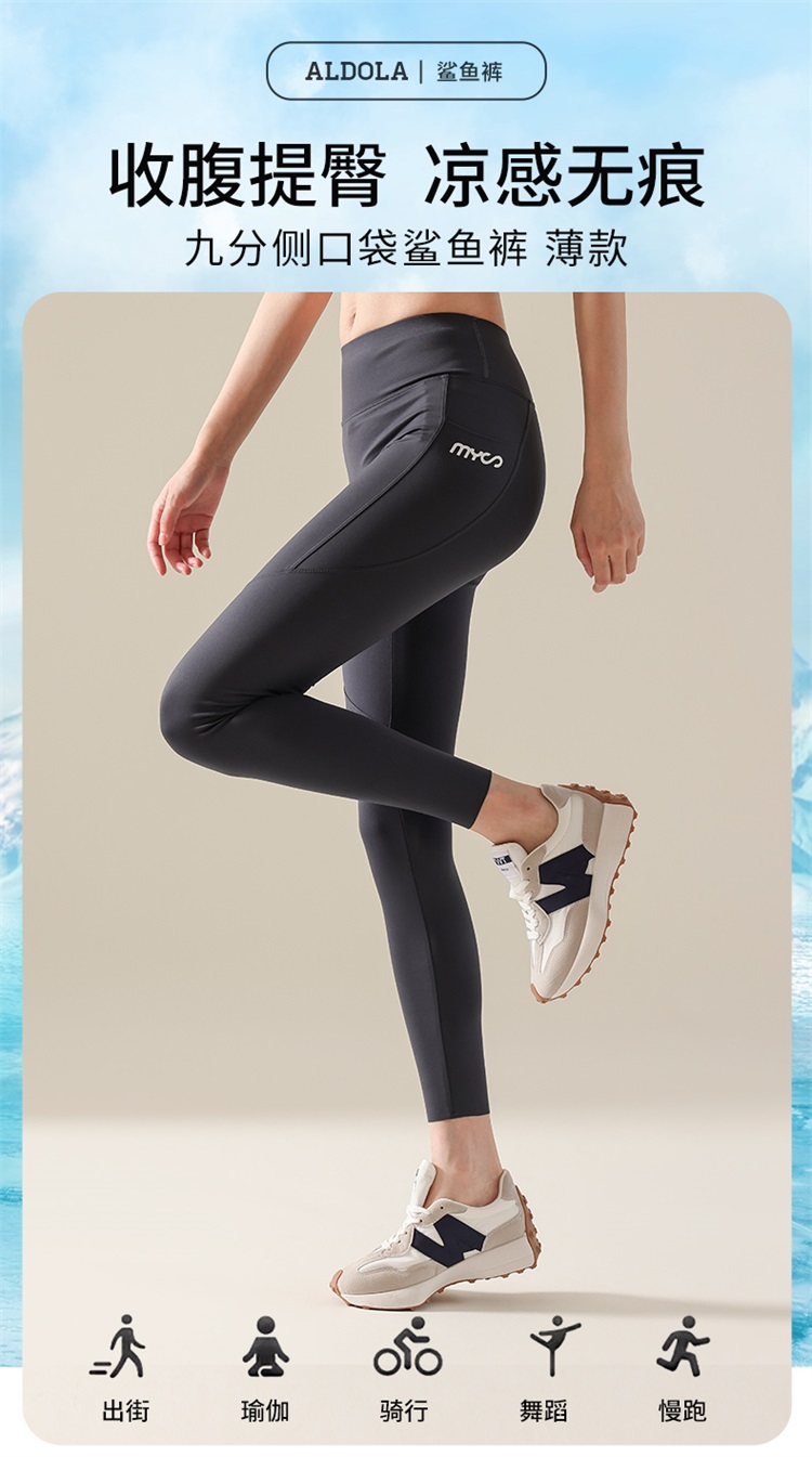 雅黛丽打底裤女薄款九分鲨鱼裤2023新款高腰收腹提臀保暖裤显瘦秋