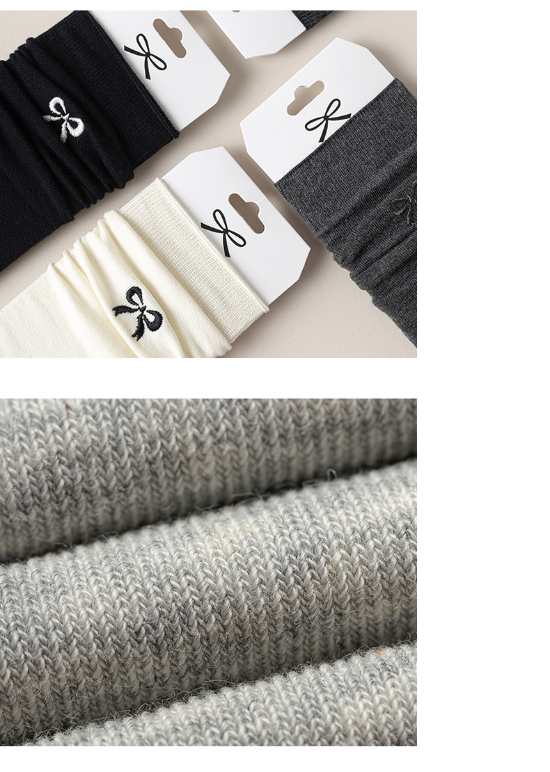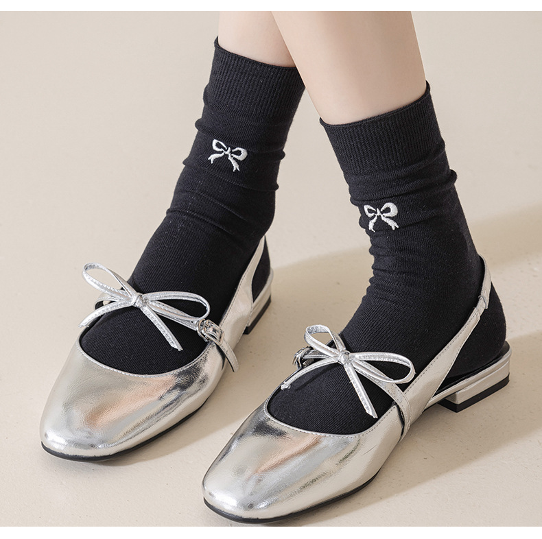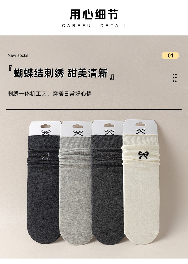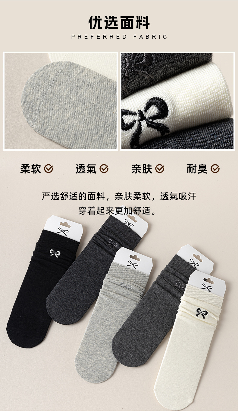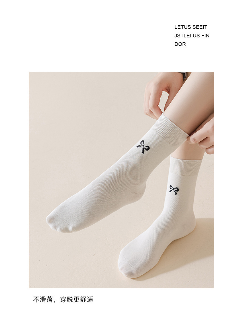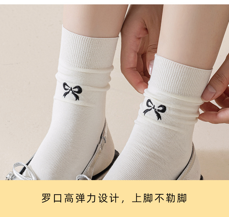 【学院风棉质蝴蝶结刺绣袜】秋冬季甜美清新刺绣蝴蝶结中筒袜,弹力脚腕口舒适不勒,高弹舒适不易变形,无骨纯棉袜子堆堆袜白色长袜条纹棉袜女QQ