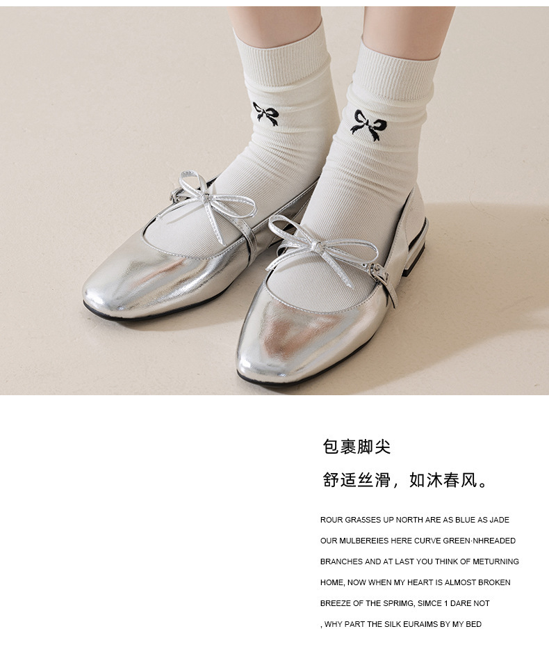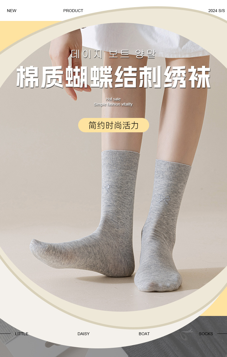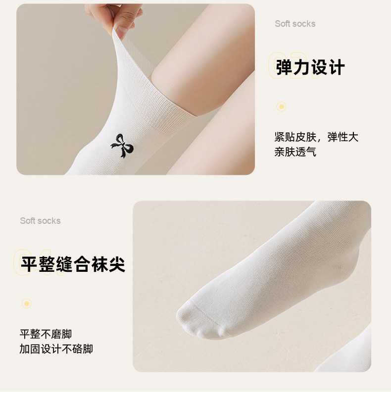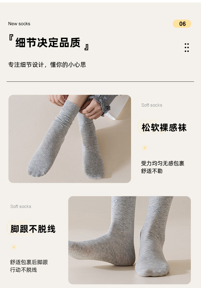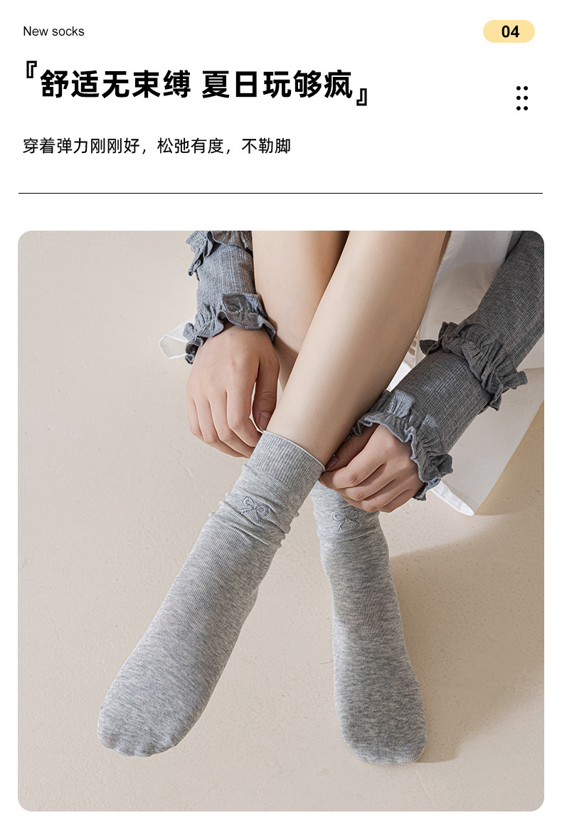 【学院风棉质蝴蝶结刺绣袜】秋冬季甜美清新刺绣蝴蝶结中筒袜,弹力脚腕口舒适不勒,高弹舒适不易变形,无骨纯棉袜子堆堆袜白色长袜条纹棉袜女QQ
