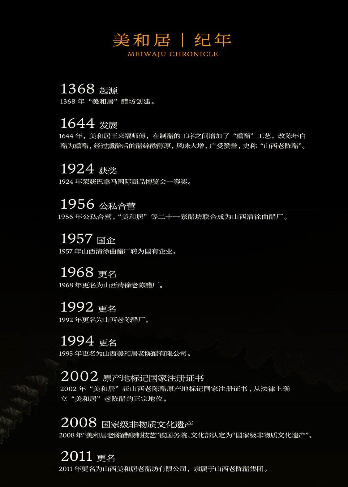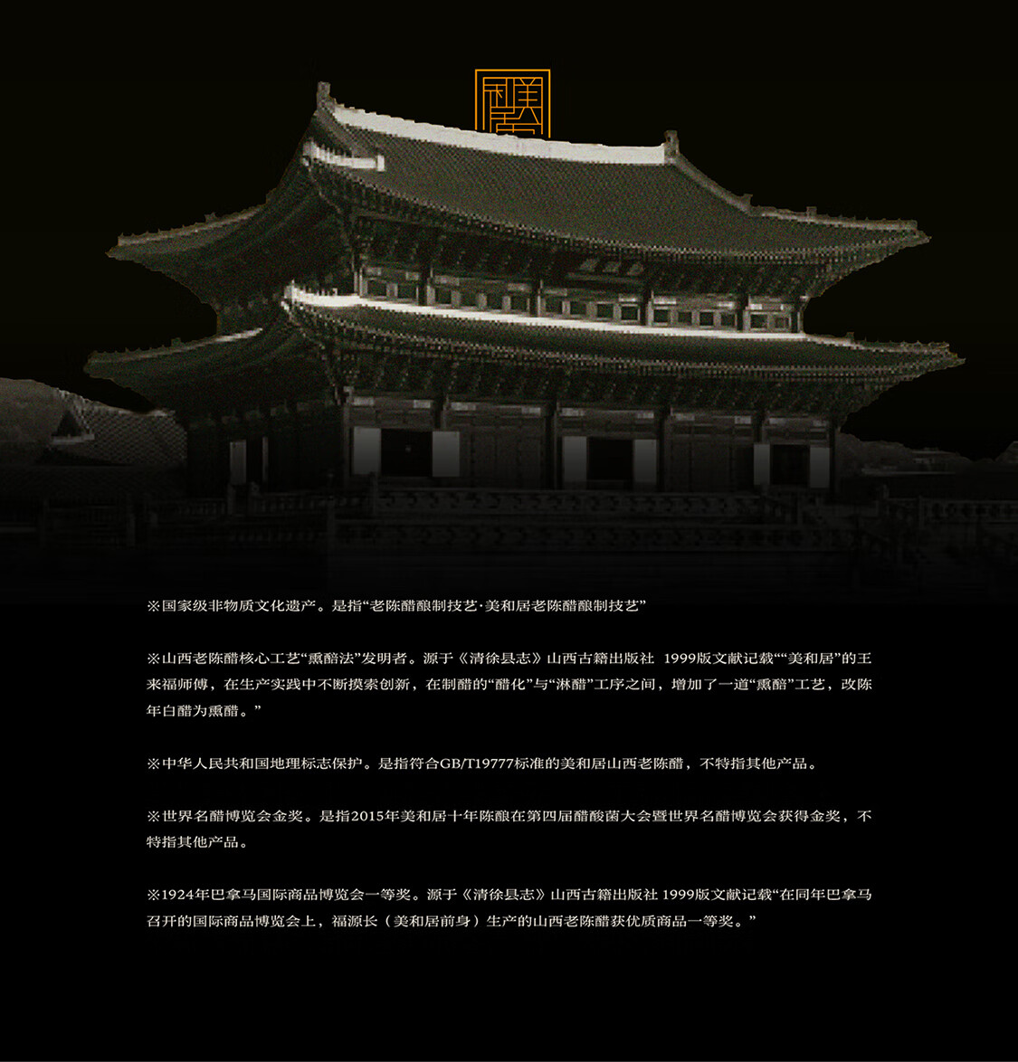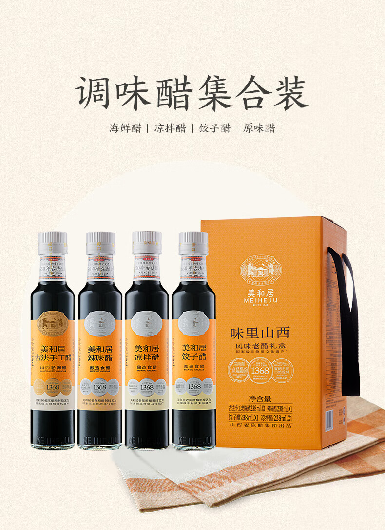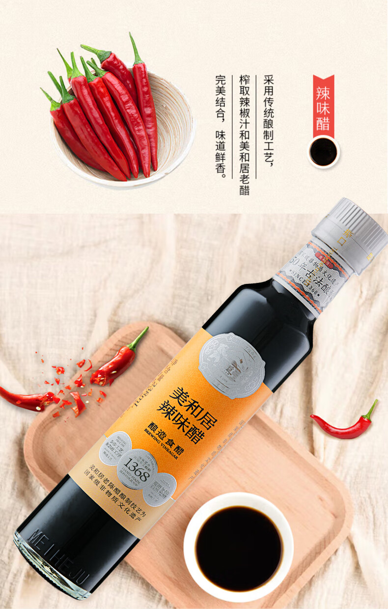 - 美和居始创于1368年,为山西老陈醋开创者,国家级非物质文化遗产酿制技艺,国家地理标志保护产品!