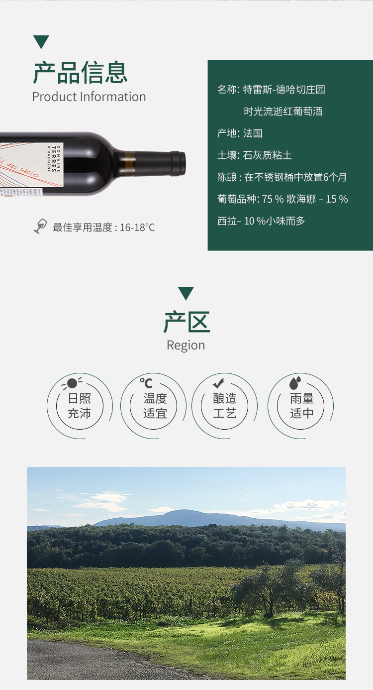 【有机干红】特雷斯-德哈切庄园 时光流逝红葡萄酒
