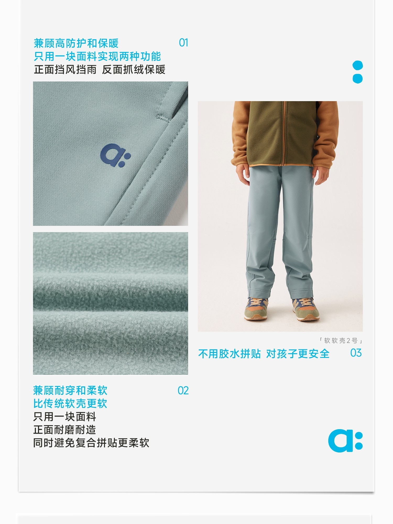 【单件直降】【秋Vol.5】幼岚童装「软软壳2号」长大裤挡风保暖24秋季新款儿童男女童裤子ZY