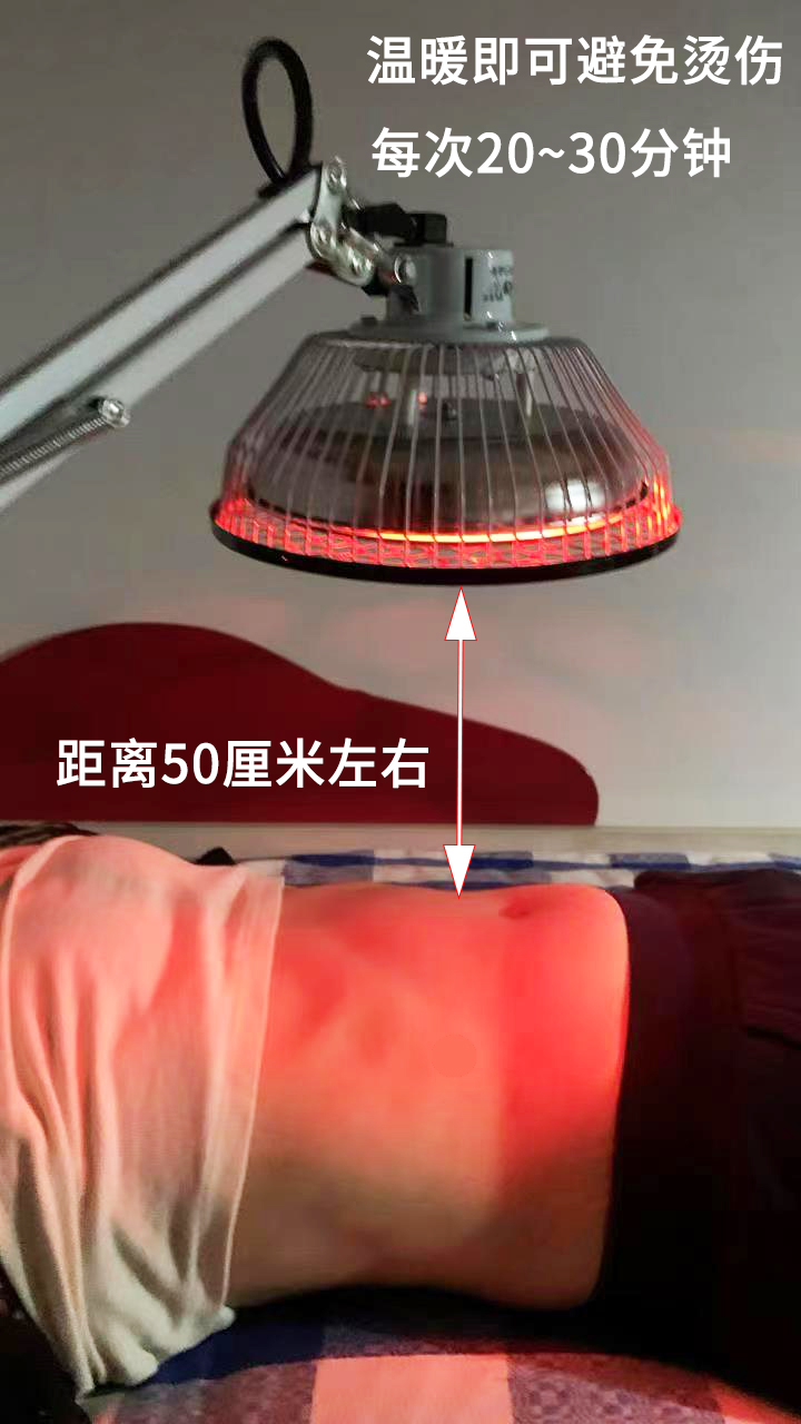 使用方法:请严格按照说明书使用,灯头距离患处50厘米左右,感受温暖即可,避免烫伤!皮肤敏感度低的老人及小孩应在家人看护下使用,否则不承担任何后果。使用过程中有任何不适,应立即停止治疗。