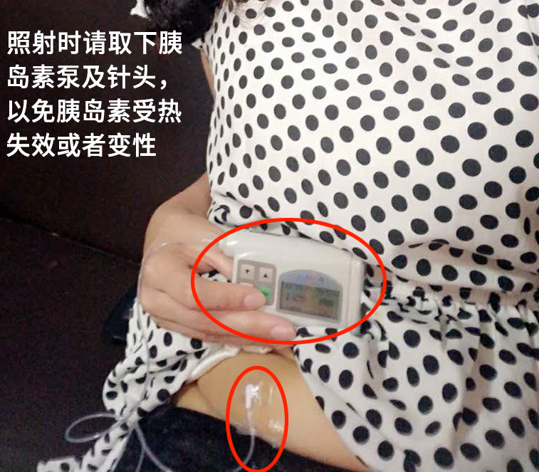 2、携带胰岛素泵患者照射输注部位时,应取下胰岛素泵,远离热源,避免因高温导致的胰岛素失效、变性!