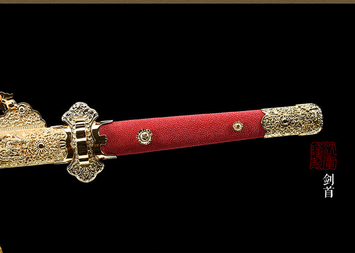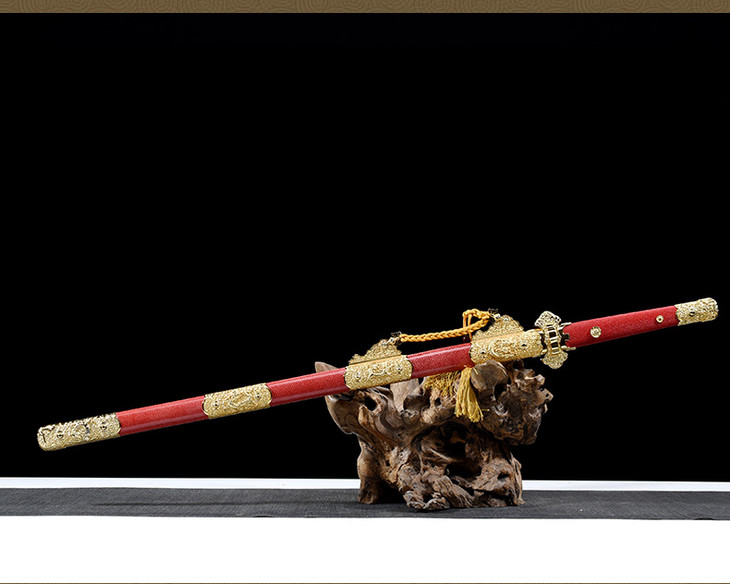 紫云 唐剑 豪华唐剑 花纹钢一体刀剑硬剑长剑龙泉沈广隆剑 工艺品 未开刃