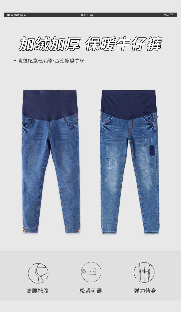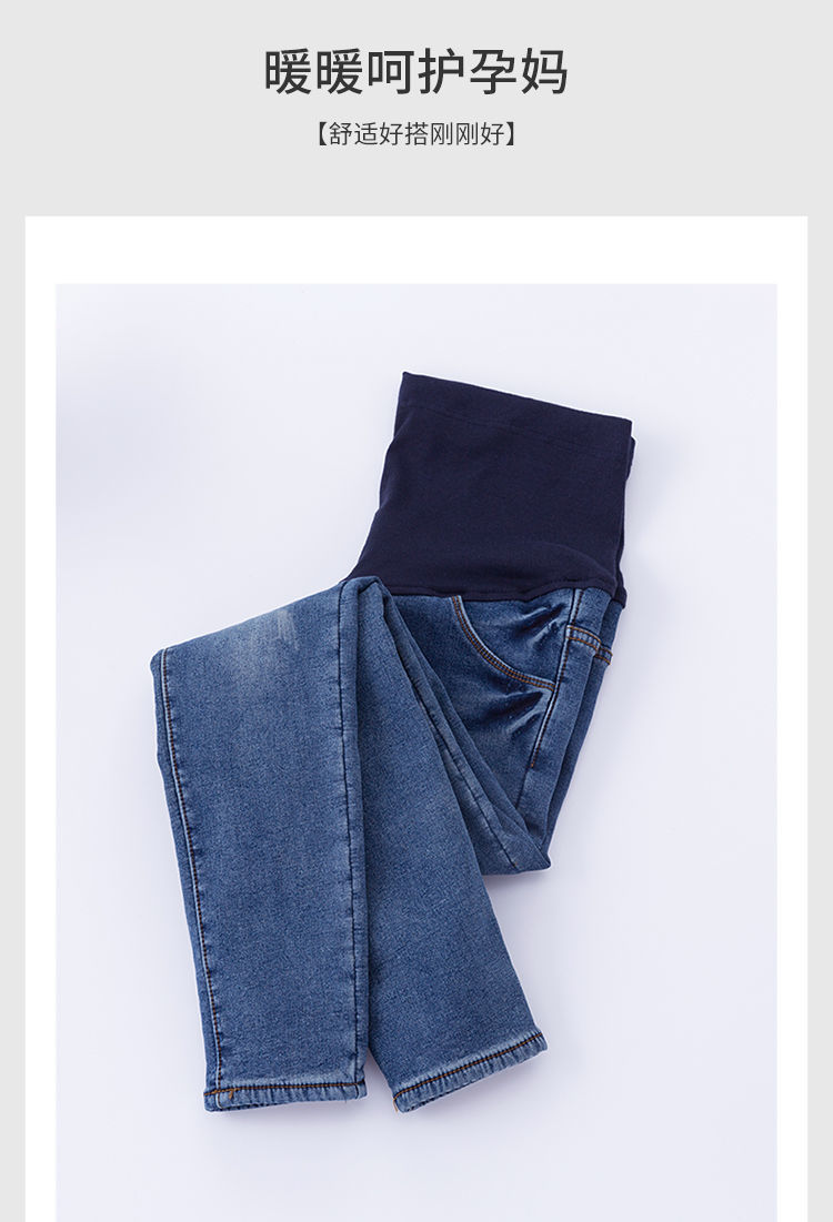 贝贝怡孕妇牛仔裤子直筒厚款外穿加绒加厚托腹孕妇装秋冬装牛仔裤