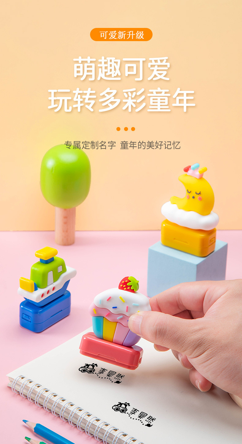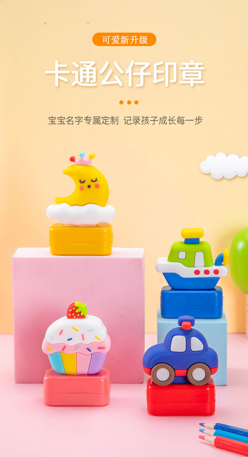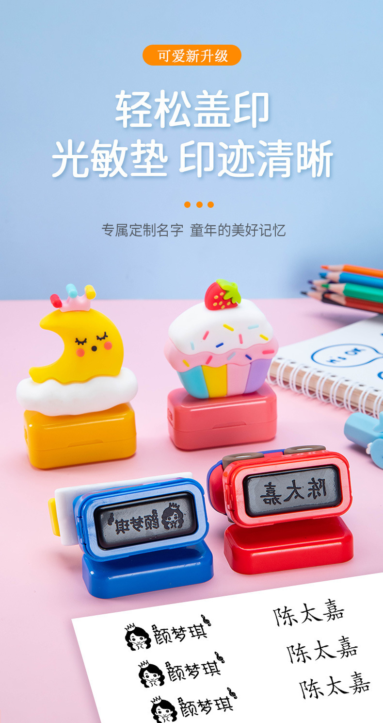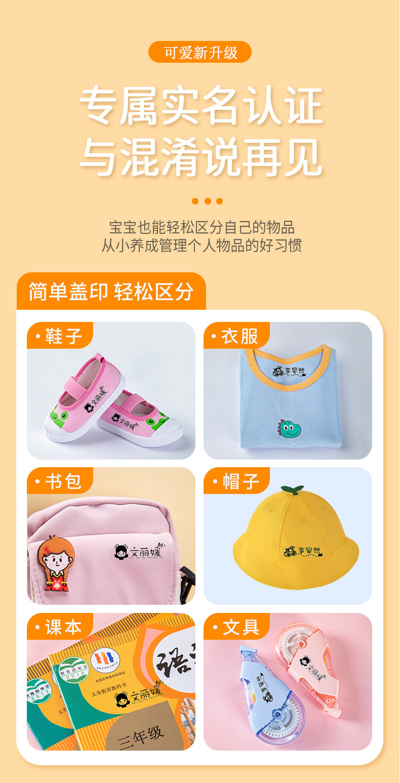 【宝宝名字专属姓名贴 赠收纳盒】卡通公仔印章 印章清晰不晕染 可水洗 记录孩子成长每一步