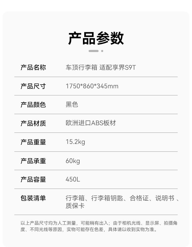 车顶行李箱 适配S9T