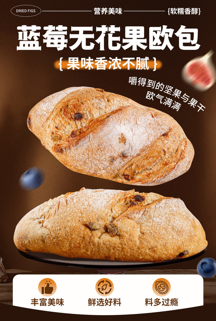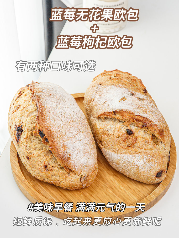 (每周周五现做现发,周四14点截单)蓝莓枸杞欧包、蓝莓无花果欧包,有机原料全手工制作