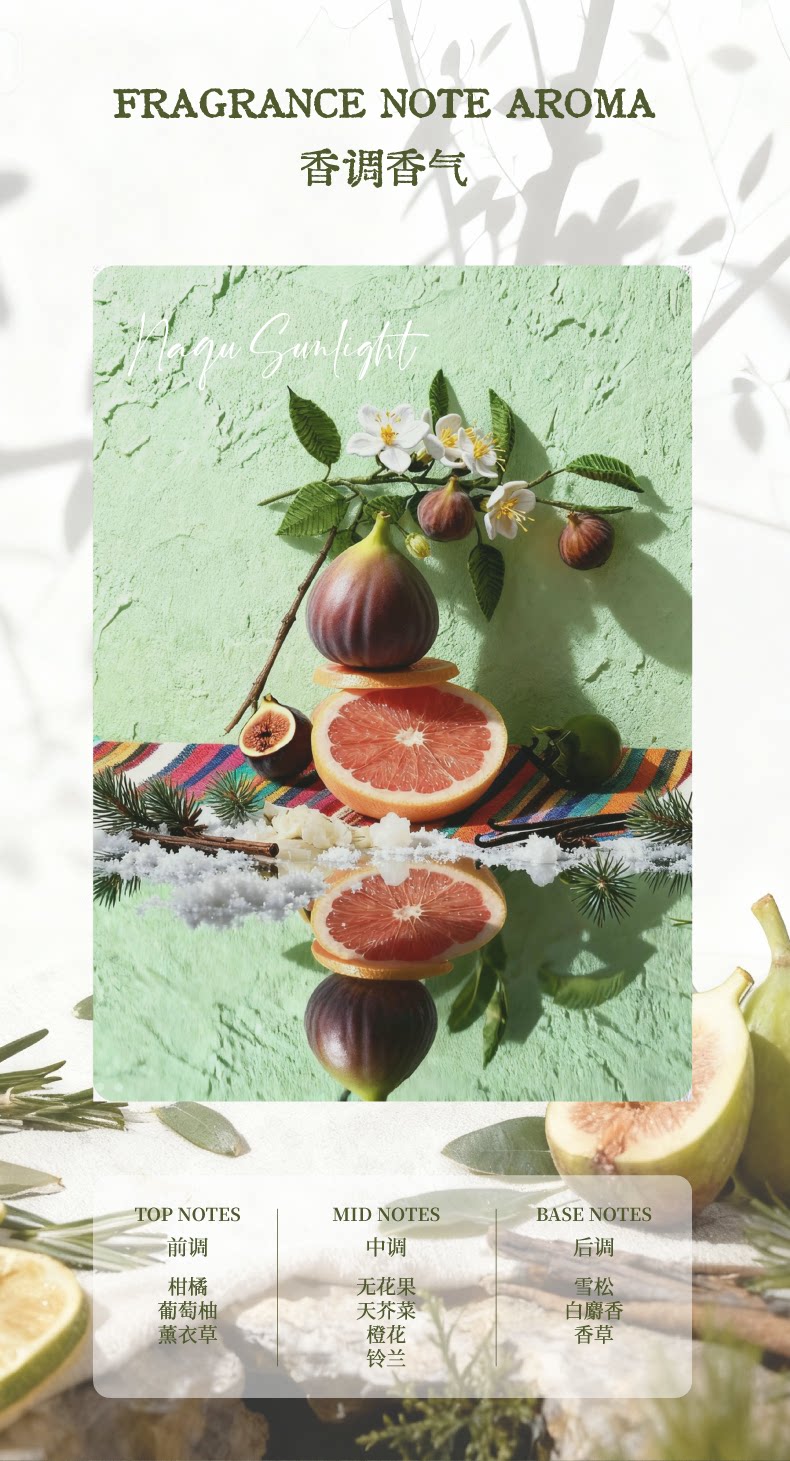 前调是干净的柑橘与草本,迎着朝露舒展,带来清冽的气息;