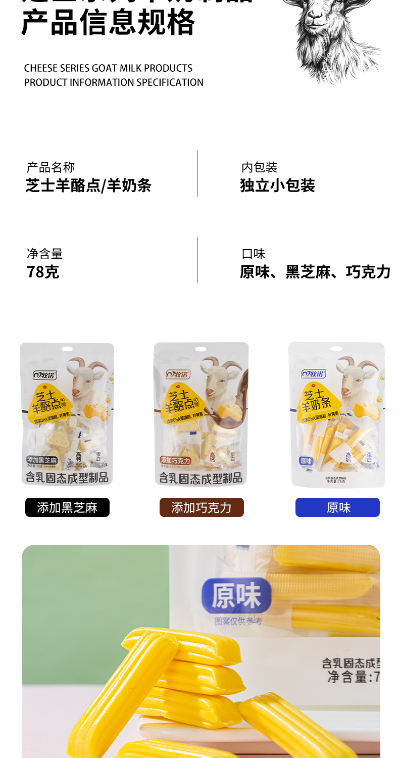 【品名】【加购5袋 到手39.9元】牧诺 芝士羊酪点/芝士羊奶条 奶中珍品 高钙高蛋白 78g/袋 【规格】 芝士羊酪点(黑芝麻) 78g*1袋 芝士羊酪点(巧克力) 78g*1袋 芝士羊奶条()78g*1袋 【产地】国内 【保质期】10个月 【发货包装】独立包装袋 【发货地】内蒙古 【发货快递】中通、圆通、申通、韵达随机发 【不发货区域】新疆、西藏、青海、港澳台 【补邮费地区】海南+7元/单 【发货时效】48-72小时,周末节假日顺延 |