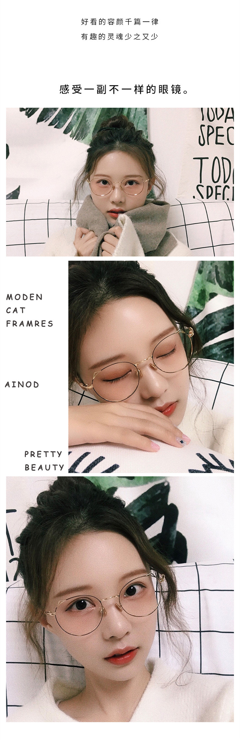 猫耳朵 可爱造型 框架眼镜