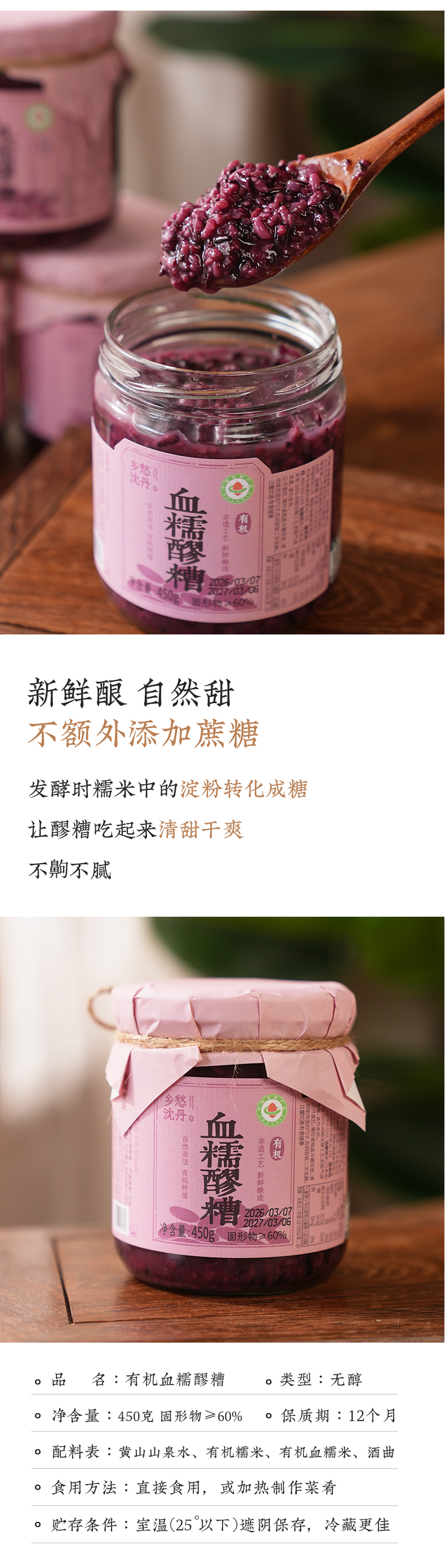 【有机血糯米醪糟•固形物≥60%】不额外添加蔗糖 新鲜酿 自然甜
