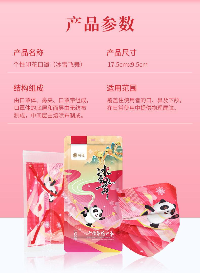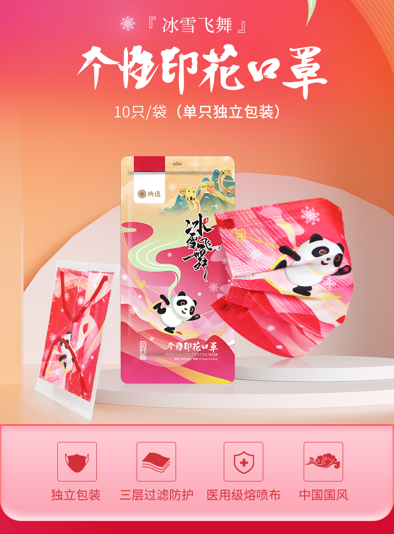 【冰雪飞舞】国风独立装 纳通一次性印花口罩 三层防护含熔喷布